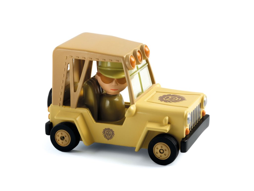 Crazy Motors Lion SafariSafari autíčko s figúrkou Lion Safari je divoké safari autíčko z kolekcie Crazy Motors, ktoré si berie to najlepšie zo sveta afrického dobrodružstva. Jeho vodič je neohrozený kráľ savany, ktorý sa nebojí vyraziť do terénu a ovládnuť každú cestu. Lev je jeho symbolom – silný, odvážny a vždy pripravený ísť naplno.Figúrka vodiča je pevne spojená s autom a nedá sa vybrať, no jej hlava sa dá otáčať, aby mala dokonalý prehľad o všetkom, čo sa deje okolo. Konštrukcia autíčka je kovová a odolná proti nárazom, vďaka čomu zvládne aj poriadne divoké jazdy.