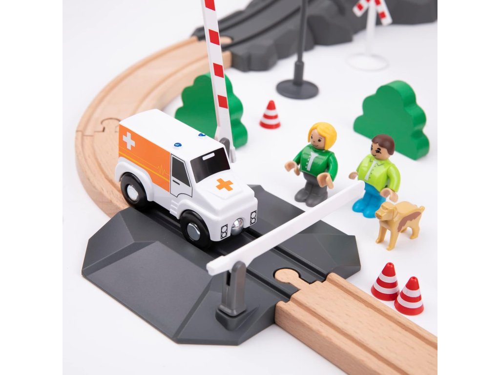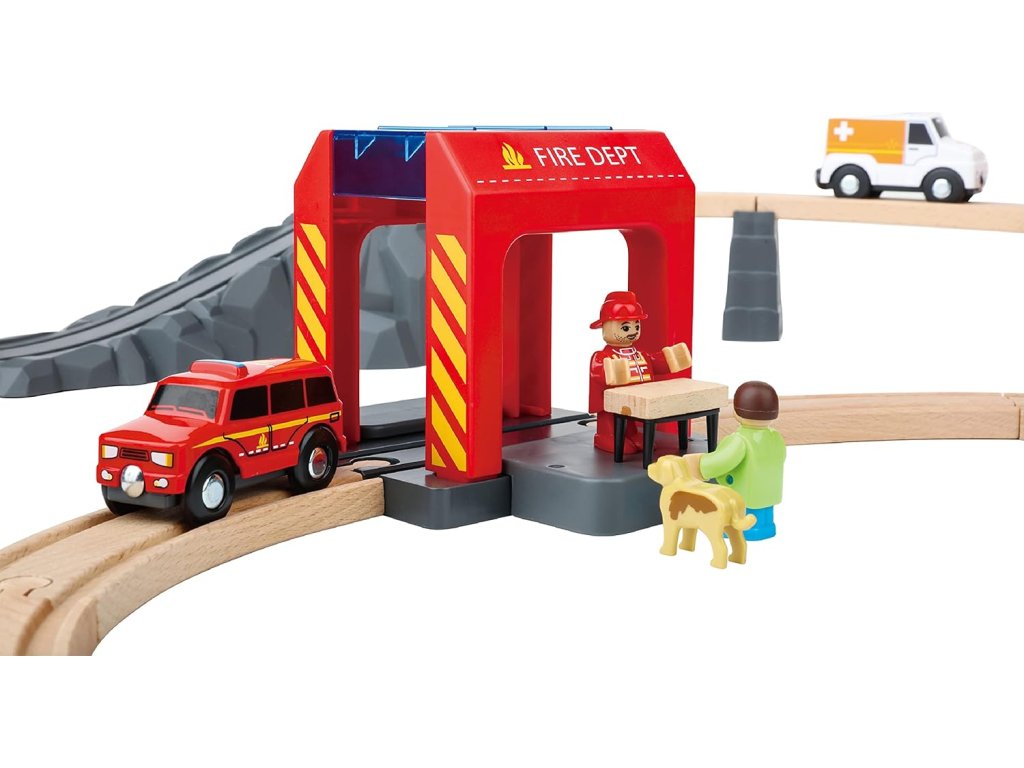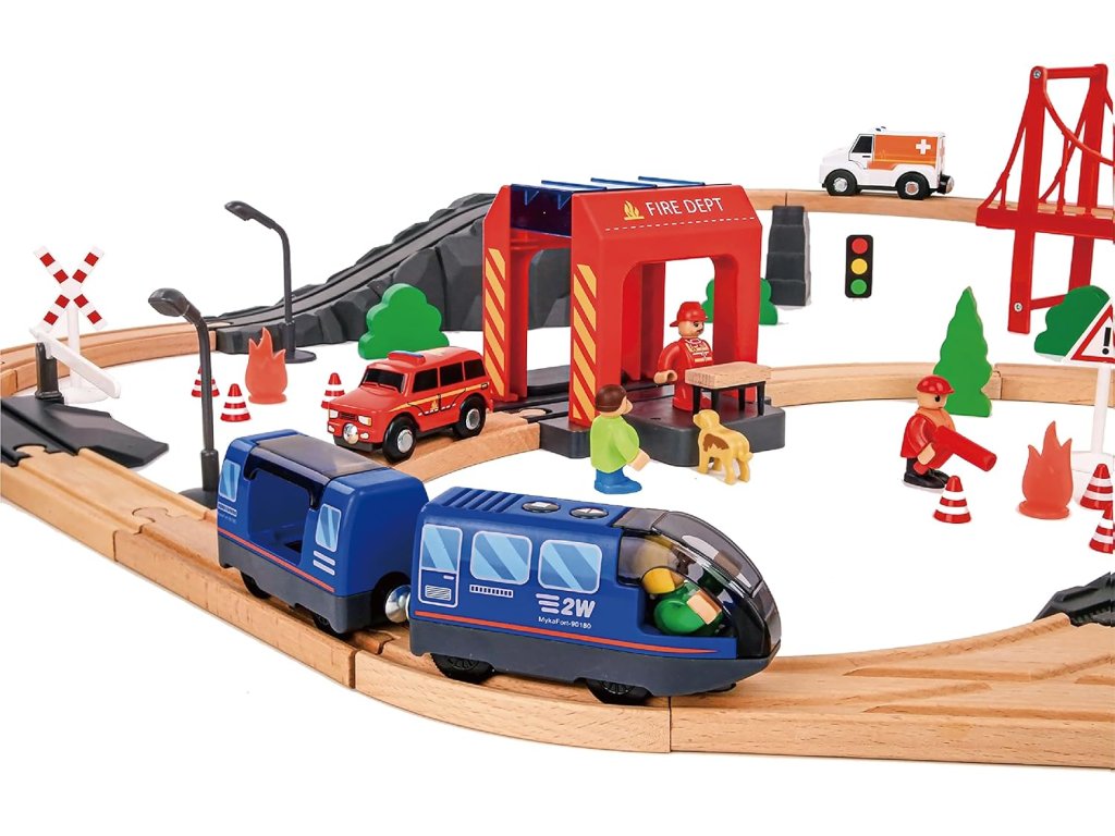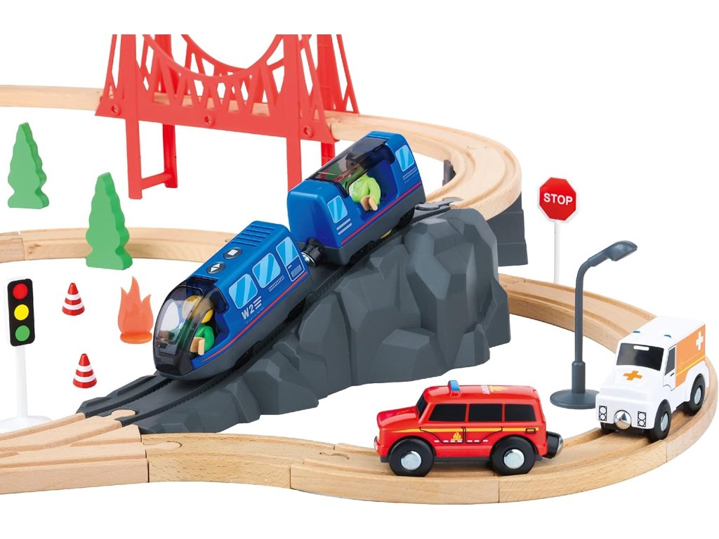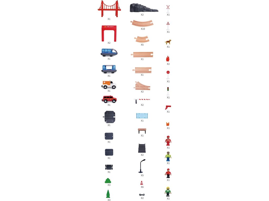 Vláčiková dráha XXLVláčiková dráha XXL – Hasiči na záchrannej misii!Otvorte dvere do sveta plnej akcie, tvorivosti a nekonečnej jazdy – s touto veľkou XXL vláčikovou dráhou dieťa prevezie vlak, zachráni mesto a postaví vlastnú dopravnú trasu. Sada ponúka dve nezávislé trate – jednu na úrovni zeme pre hasičské autá a jednu vyvýšenú pre osobný vlak – čo umožňuje pútavú hru plnú kombinácií a príbehov.Čo robí túto dráhu výnimočnou?dve nezávislé trate – pozemná dráha pre hasičské vozidlá a vyvýšená trať pre vláčikosobný vlak s funkciami dopredu/dozadu/zastavenie, realistické zvukové efekty magnetické spojenie vozidiel a vagónov, autá môžu jazdiť na trati aj mimo nej robustné prevedenie z kvalitného dreva (bukové drevo) a odolného plastu – stvorené na dlhú hru ideálne pre deti od cca 3 rokov – podporuje samostatnú hru aj spoločné rodinné chvílehra rozvíja jemnú motoriku, koordináciu ruka-oko, podporuje fantáziu a logické myslenieDodatočné parametre