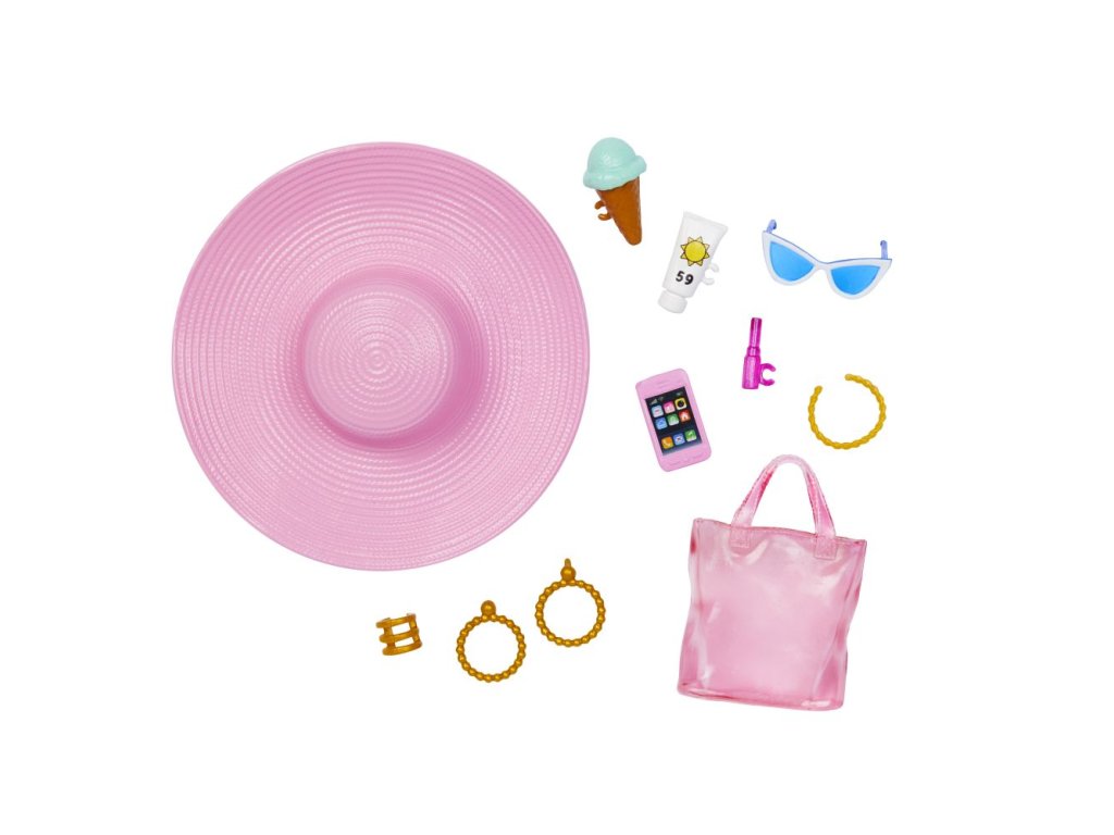 Oddýchnite si na pláži s touto bábikou Barbie®! Jej super roztomilý oblečok a tematické doplnky budú deti inšpirovať k vymýšľaniu všetkých možných letných príbehov zaliatych slnkom. Bábika Barbie® má na sebe krásne ružovo-biele pruhované plavky s priesvitným bodkovaným sarongom uviazaným v páse. Zlaté náušnice a ružové sandálky dodávajú na roztomilosti! Medzi ďalšie štýlové doplnky patrí klobúk so širokou krempou proti slnku, mačacie slnečné okuliare, zlatý náhrdelník a náramok. Jej ružová taška je ideálna na uloženie opaľovacieho krému, rúžu a smartfónu; kornútok s mätovou zmrzlinou sa jej pripne k ruke pre realistické pózovanie! Táto plážová bábika Barbie® je okúzľujúcim darčekom pre všetky milovníčky mora a módy! Bábika nevie samostatne stáť. Farby a vzhľad výrobku sa môžu líšiť.Dodatočné parametre