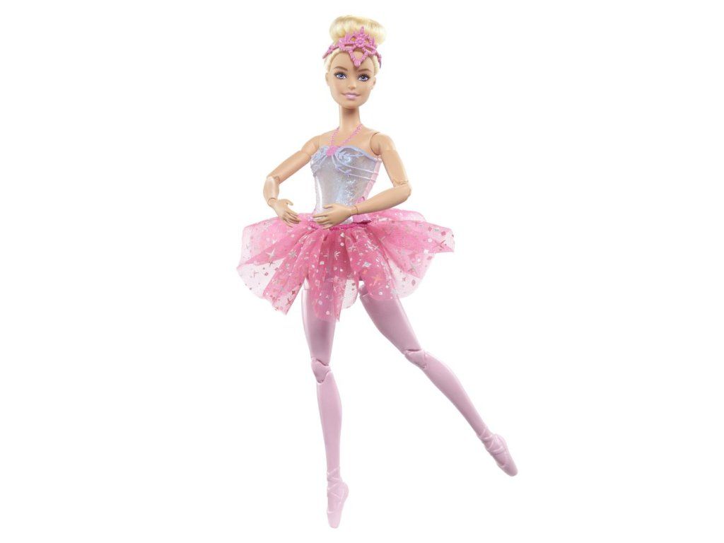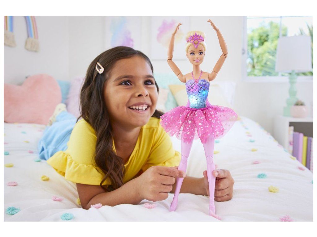 Táto Barbie® Svietiaca magická baletka s ružovou trblietavou sukienkou a čelenkou je vybavená kúzelnou svietiacou funkciou a kĺbovým telom pre inšpiratívne rozprávanie príbehov a tanečné hry. Bábika nevie samostatne stáť. Farby a vzhľad výrobku sa môžu líšiť.Dodatočné parametre