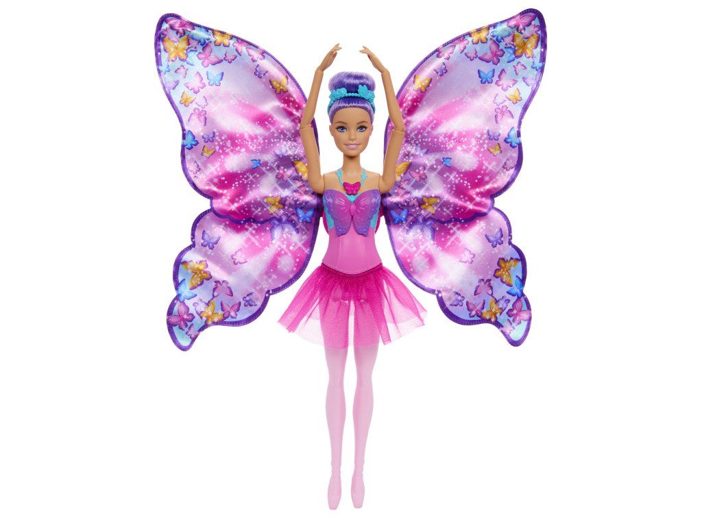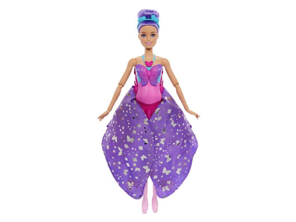 Barbie® Tanečnica s motýlími krídlami podnecuje fantáziu a ponúka čarovnú premenu 2 v 1! Stačí stlačiť náhrdelník na živôtiku bábiky a sledovať, ako sa jej fialová vrchná sukňa ako kúzlom rozvinie do veľkých trblietavých motýlích krídel. Deti si užijú tento parádny okamih, ktorý si budú rady opakovať znova a znova. Očarujúci fialový účes vo forme drdolu s kvetinovou čelenkou, oslnivý živôtik a baletné črievičky dotvárajú jej úžasný vzhľad.Dodatočné parametre