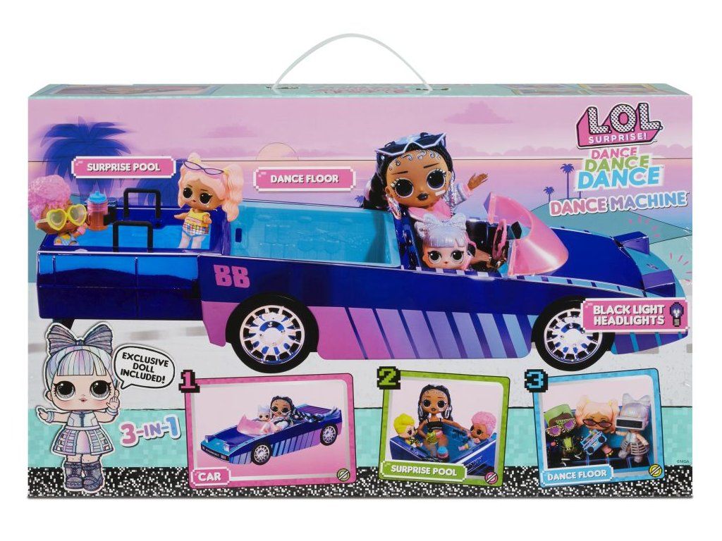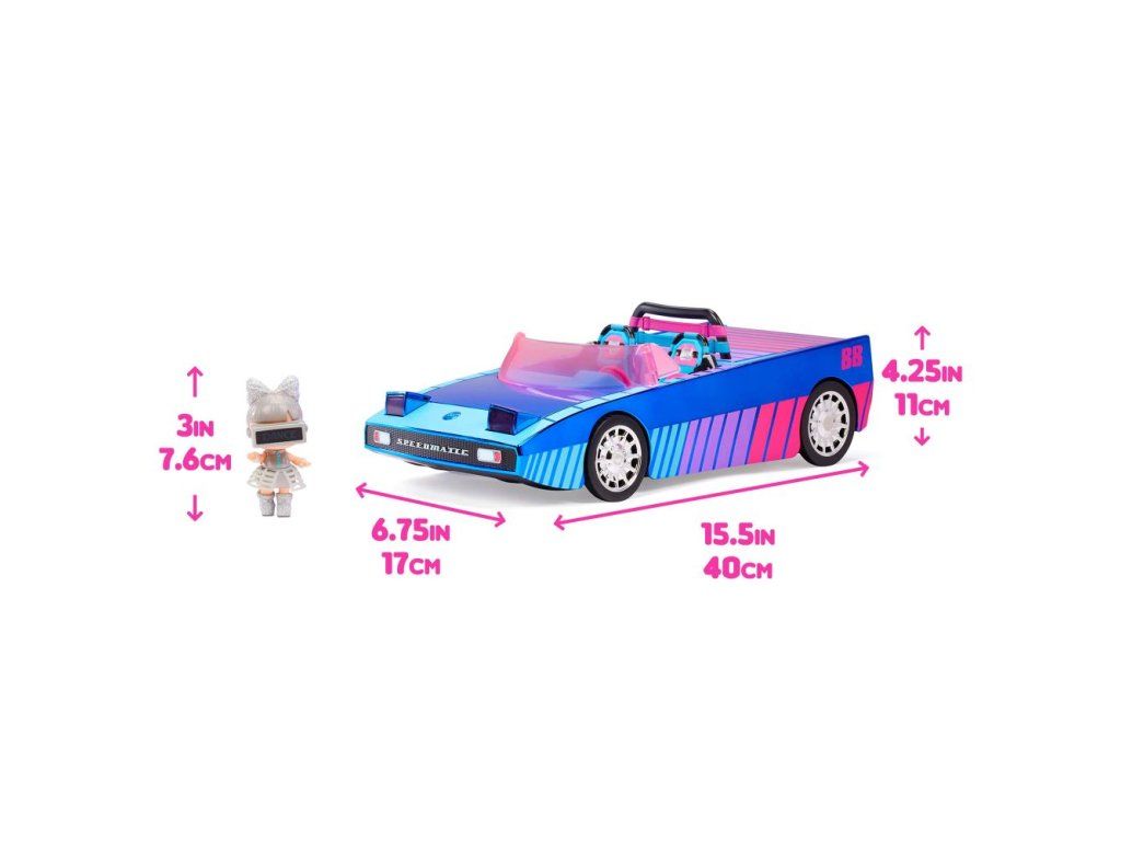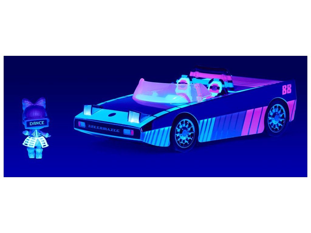 V L.O.L. Surprise! Dance Luxusnom aute vo futuristickom designe s metalickým modro-fialovým povrchom môžu jazdiť všetky L.O.L. bábiky a OMG Veľké ségry. Zadnú časť auta môžeš rozložiť na taneční parket a bazén. Auto má fungujúce predné svetlá, ktoré odhalia neónové prekvapenia. Obsah balenia: • štýlové auto v modro-fialovej metalíze • 1 exkluzívna bábika Danceboat • 3 v 1: auto, tanečný parket a bazén • plne funkčné predné svetlá auta svietia UV svetlom a v tme alebo v prítmí odhalia neónové prekvapenia, napr. na bábikách • bezpečnostné pásy, sklopné zrkadlá, držiak nápojov, fľaša, otvárateľná priehradka pod palubnou doskou • nastaviteľné sedadlá, aby sa mohli v aute zviezť i OMG Veľké ségryDodatočné parametre