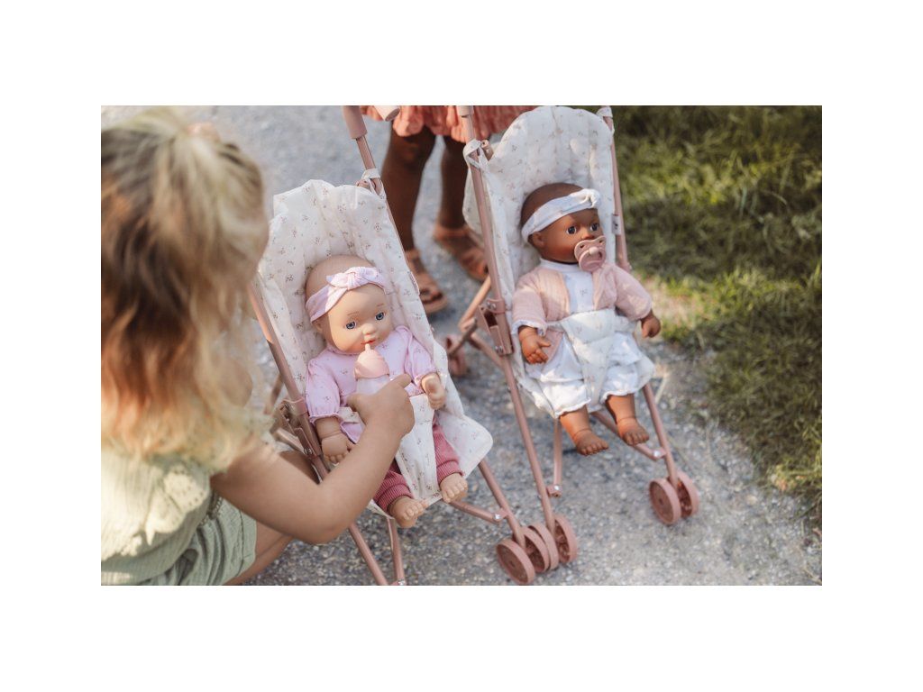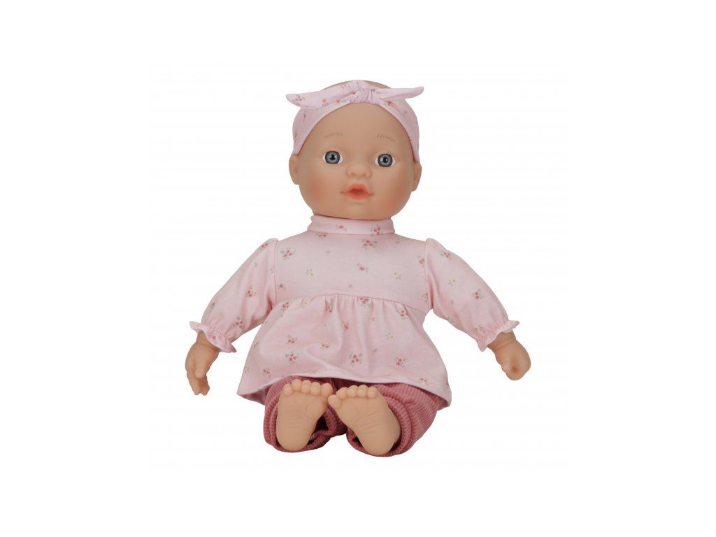 Rozkošnú bábiku v podobe bábätka môže vaše dievčatko aj chlapček prezliekať, správať, kŕmiť fľaštičkou, upokojovať cumlíkom aj voziť v kočíku. Bábika je oblečená do nežných ružových šiat, rebrovaných nohavíc a čelenky, súčasťou balenia je aj fľaštička a cumlík.