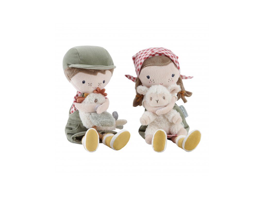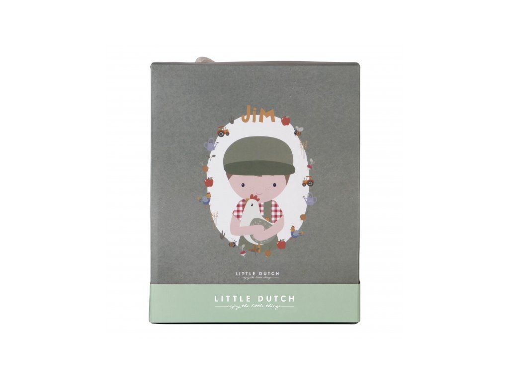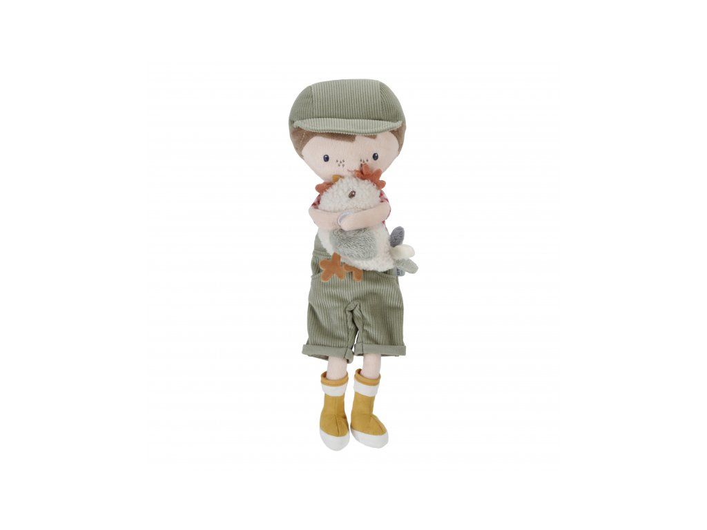 Originálna plyšová bábika v podobe farmára Jima v menčestrových nohaviciach s trakmi a so sliepočkou v ruke. Bábika z mäkkého jemného materiálu je ideálna ako prvá bábika pre vaše dieťa, je vhodná na hranie aj maznanie a bude sa s ňou aj krásne zaspávať!