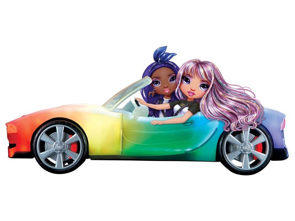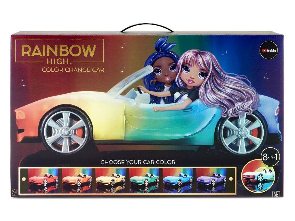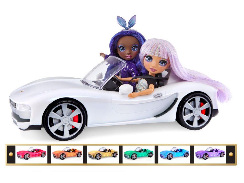 Vyrazte vo veľkom štýle na výlet alebo do školy novým Rainbow High dúhovým autom. Prečo sa uspokojiť s jednofarebným autom, keď môžete mať dúhové? Stačí stlačiť tlačidlo pre výber farby auta. Začínate bielou a potom si môžete vybrať červenú, oranžovú, žltú, zelenú, modrú alebo fialovú. Obsah balenia: • dvojmiestny športový kabriolet • LED svetlá meniace farbu • kolesá na voze sa pohybujú • je určené pre Rainbowh High Fashion bábiky Balenie neobsahuje bábiku.Dodatočné parametre