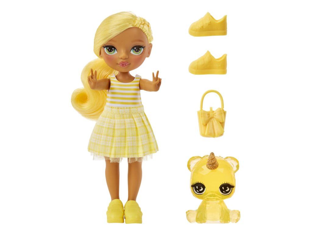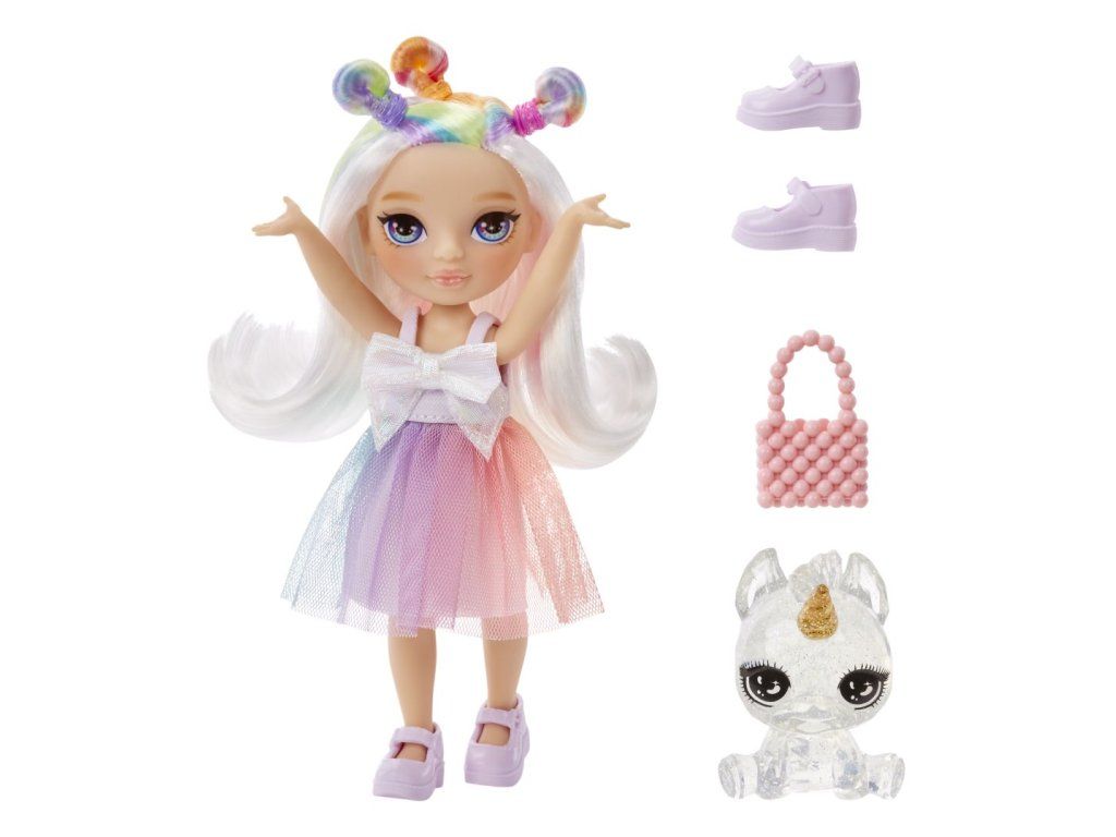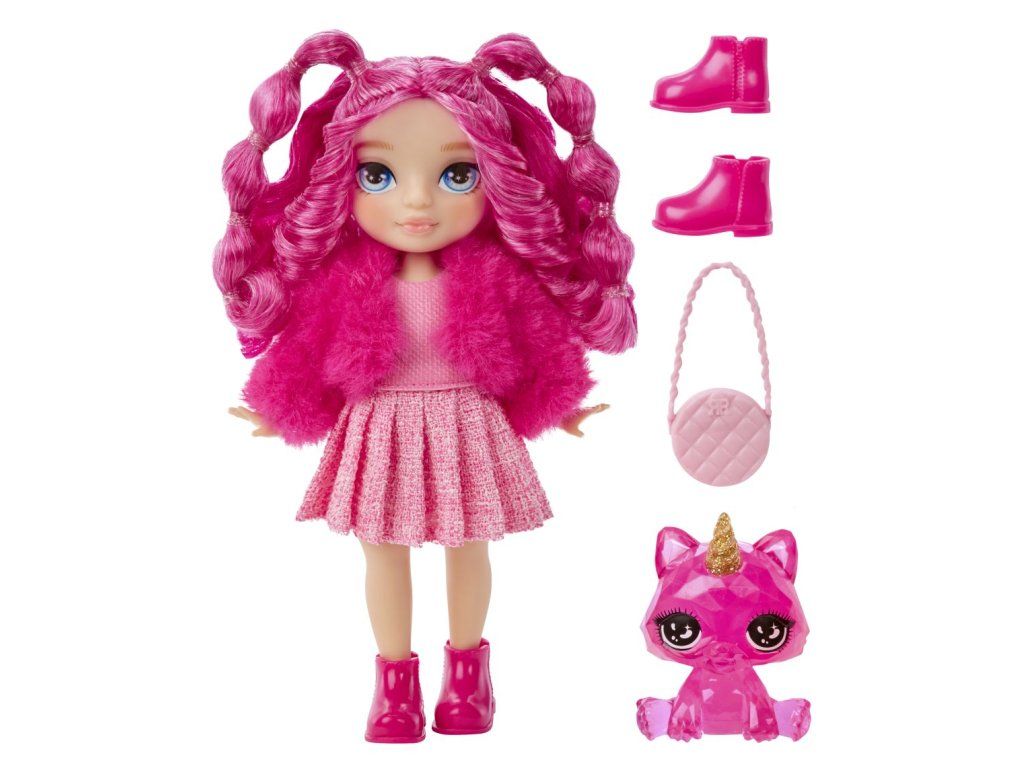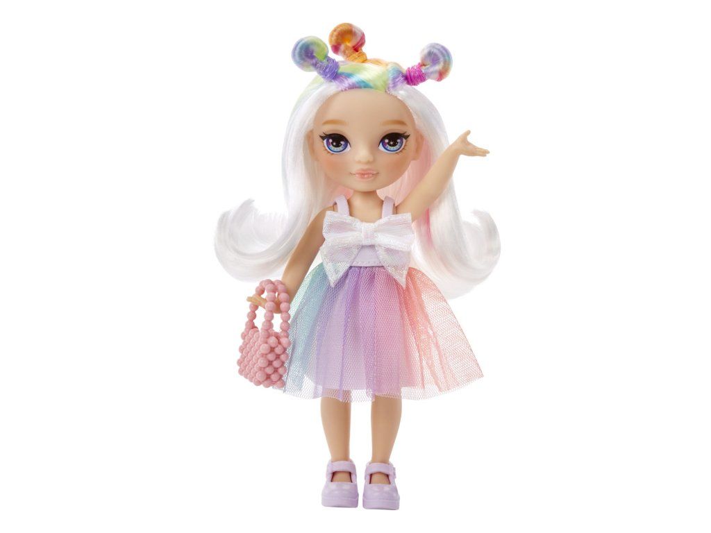 Zoznám sa s malými sestričkami obľúbených Rainbow High bábik. Tieto rozkošné malé bábiky majú svoj vlastný štýl, účes, kabelky a dokonca aj domáceho miláčika. Niektoré sestričky sú podobné veľkým Fashion bábikám a niektoré majú vlastnú výraznú osobnosť. Obsah balenia: • 1 bábika s 5 pohyblivými kĺbmi • 1 outfit podčiarkujúci individualitu bábik • 1 pár topánok • 1 kabelka • 1 domáci miláčik (mačička alebo psík)Dodatočné parametre
