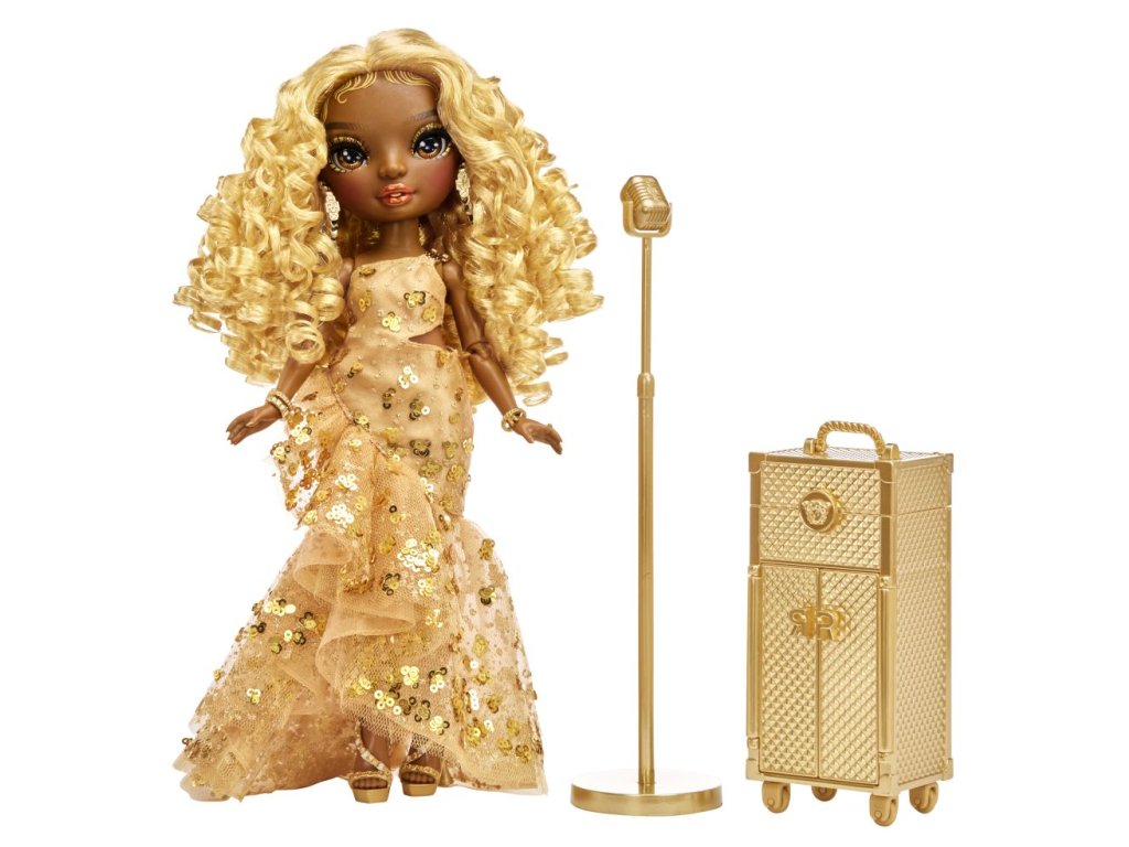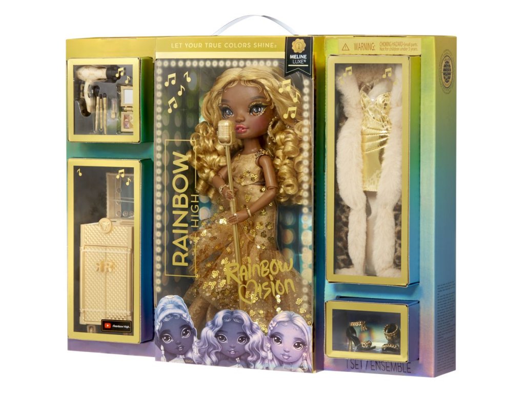 Najlepšia z najlepších umeleckých škôl z celého sveta sa zúčastňuje elitnej akcie. Stovky súťažiacich ukážu nielen svoje nové fashion modely v úžasných farbách, ale aj svoje hudobné nadanie. Získaj všetky 3 nové bábiky z Diva hudobnej skupiny reprezentujúcej Rainbow High! Obsah balenia: • 1 z 3 nových bábik s pohyblivými kĺbmi a dlhými vlasmi, ktoré sa dajú česať • 2 štýlové outfity, 2 páry topánok, náušnice • hrebeň a fén • 1 kufor, ktorý je možné rozložiť na kozmetický stolík • make-up doplnky: očné tiene, rúž, štetce... • mikrofón • stojan pre bábiku Tip: Bábiky majú odnímateľné ruky v zápästí pre ľahšie obliekanie. Veľkosť bábiky: cca 28 cm.Dodatočné parametre