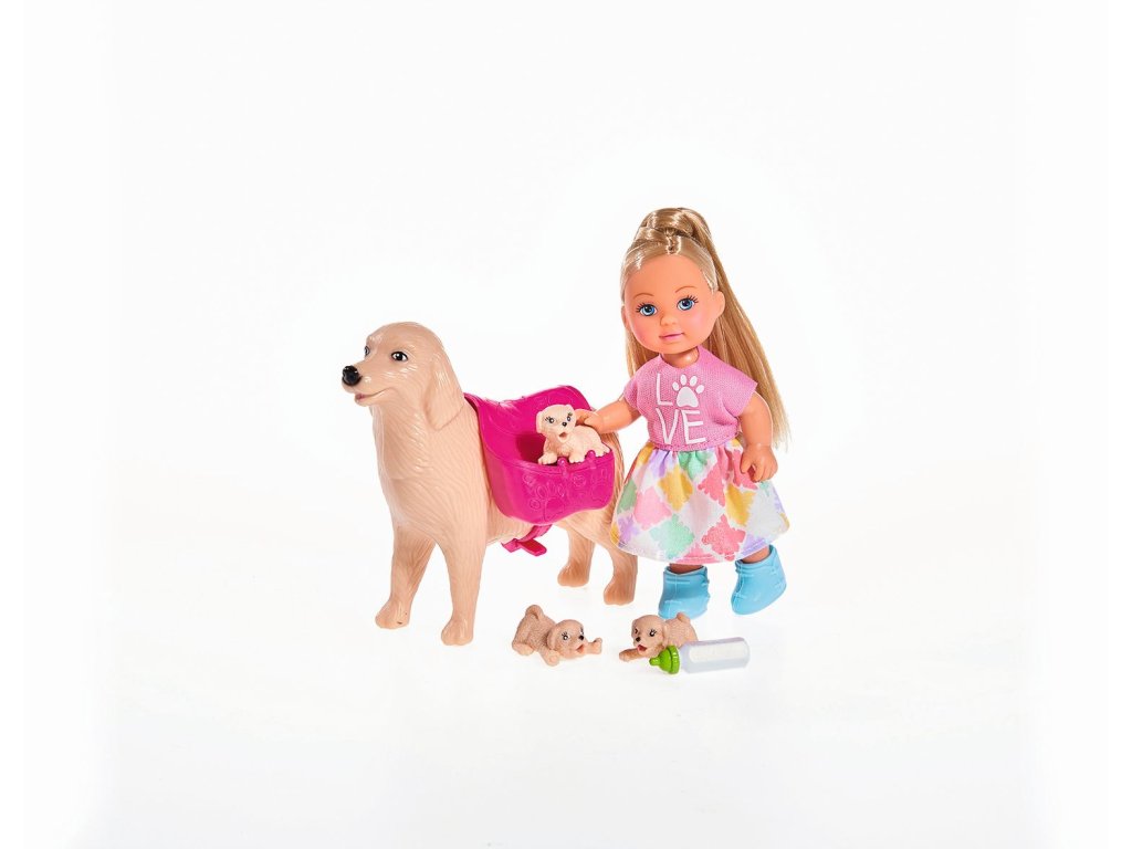 Bábika Evička so svojím psíkom a 3 šteniatkami. Príslušenstvo je súčasťou. Veľkosť bábiky 12 cm.Dodatočné parametre