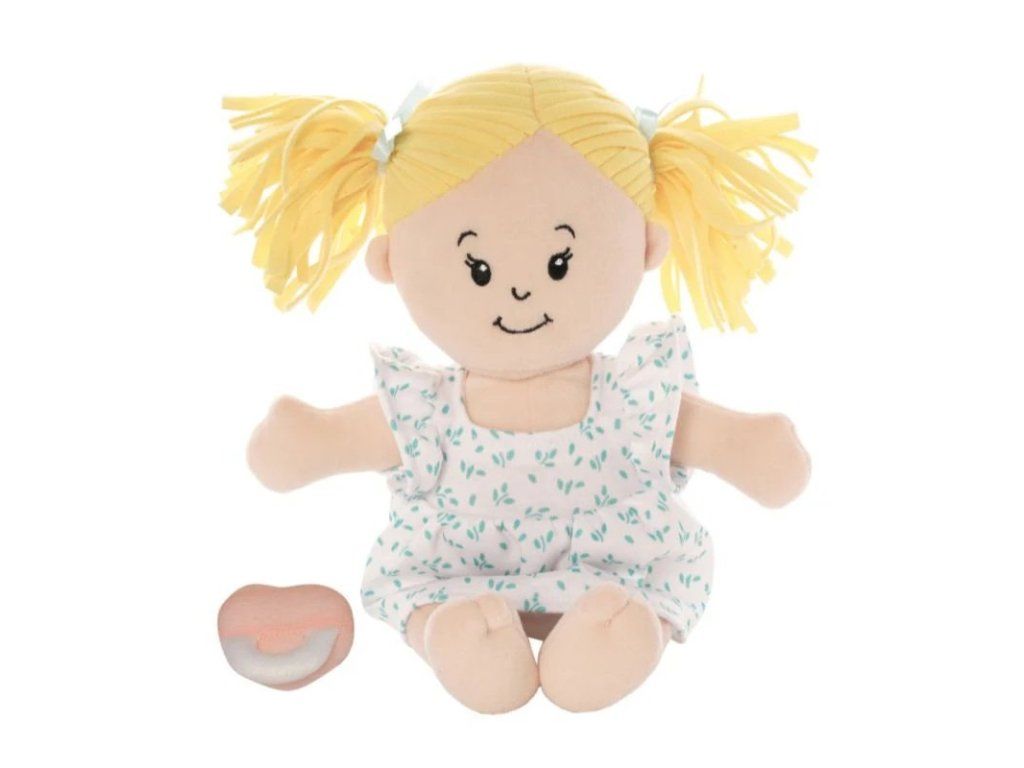 Bábiku možno prať v práčke (jemný program, vlažná voda). Cumlík perte iba ručne. Sušte na vzduchu. Nebielte. Pred sušením jemne prsty prečešte vlasy. Pokiaľ sa počas prania výplň posunie, jemne ju vmasírujte do pôvodného tvaru.