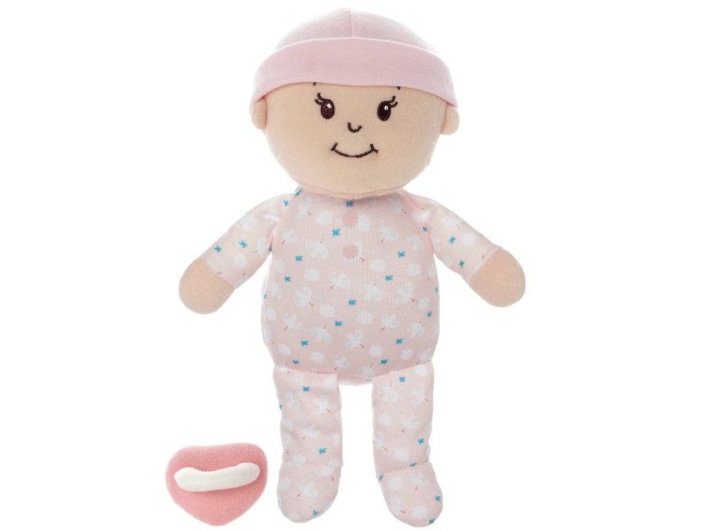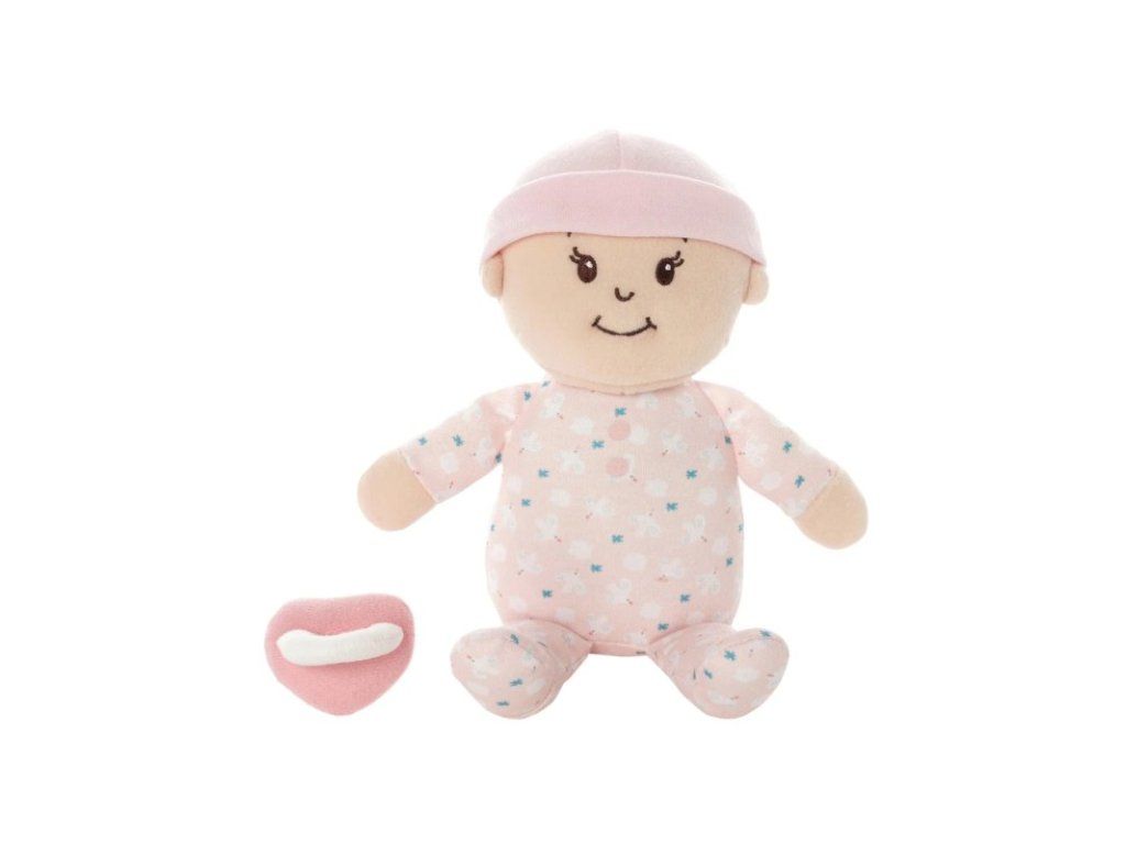 Bábiku možno prať v práčke (jemný program, vlažná voda). Cumlík perte iba ručne. Sušte na vzduchu. Nebielte. Pokiaľ sa počas prania výplň posunie, jemne ju vmasírujte do pôvodného tvaru.