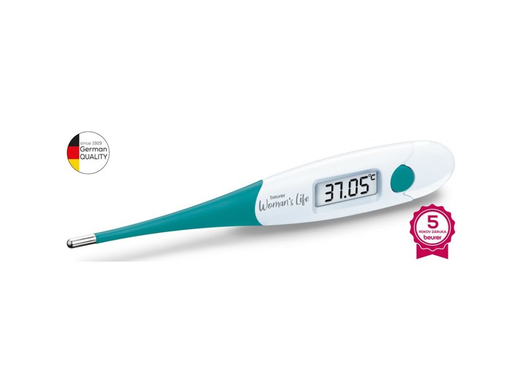 Bazálny teplomer Beurer OT 20 je ideálnou voľbou pre plánovanie tehotenstva alebo sledovanie cyklu.Moderná technológia merania teploty bazálnych teplomerov Beurer pracuje v spojení s aplikáciou na sledovanie cyklov, aby poskytla úplne nové možnosti spoľahlivejšieho predpovedania plodných a neplodných dní. Rodinné a životné plánovanie v harmónii!Charakteristika a technické údaje: Zobrazenie na 2 desatinné miesta Používajte aplikáciu "Ovy" na sledovanie prirodzeného cyklu (ručné nahrávanie teploty) Technológia kontaktného merania Vhodné pre orálne a vaginálne meranie Flexibilný merací hrot Vodeodolný Dezinfikovateľný Rozsah merania: 32,00 - 42,99 ° C Presnosť merania: ± 0,05°C pri teplote 35-38°C (okolitá teplota 18-28°C) v zostávajúcom meracom rozsahu: ± 0,1°C 1 pamäťový priestor Automatické vypnutie Akustický signál po dokončení merania Zdravotnícke zariadenie S ochranným krytom Zdarma k stiahnutiu z "OVY" app Batériová prevádzka Indikátor vybitia batérie Hmotnosť výrobku. približne. 12,9 g (vrátane batérií) Rozmery výrobku (dx š xv): 142 x 23 x 13 mm CE: ÁnoPlánujte vašu rodinu prirodzene a jednoducho pomocou bazálnych teplomerov nemeckého špecialistu Beurer. Symptomatická metóda je vedecky uznaná forma prirodzeného plánovania rodiny (NFP). Fertilné dni sa určujú pomocou fyzikálnych symptómov vrátane bazálnej teploty. Všetky dôležité informácie môžete zaznamenať pomocou bezplatnej aplikácie "Ovy". To umožňuje ešte ľahšie interpretovať signály vášho tela správne a v dlhodobom horizonte sa budete cítiť istý vo vašom mesačnom cykle. Kvalita, ktorá nezradí!Dodatočné parametre
