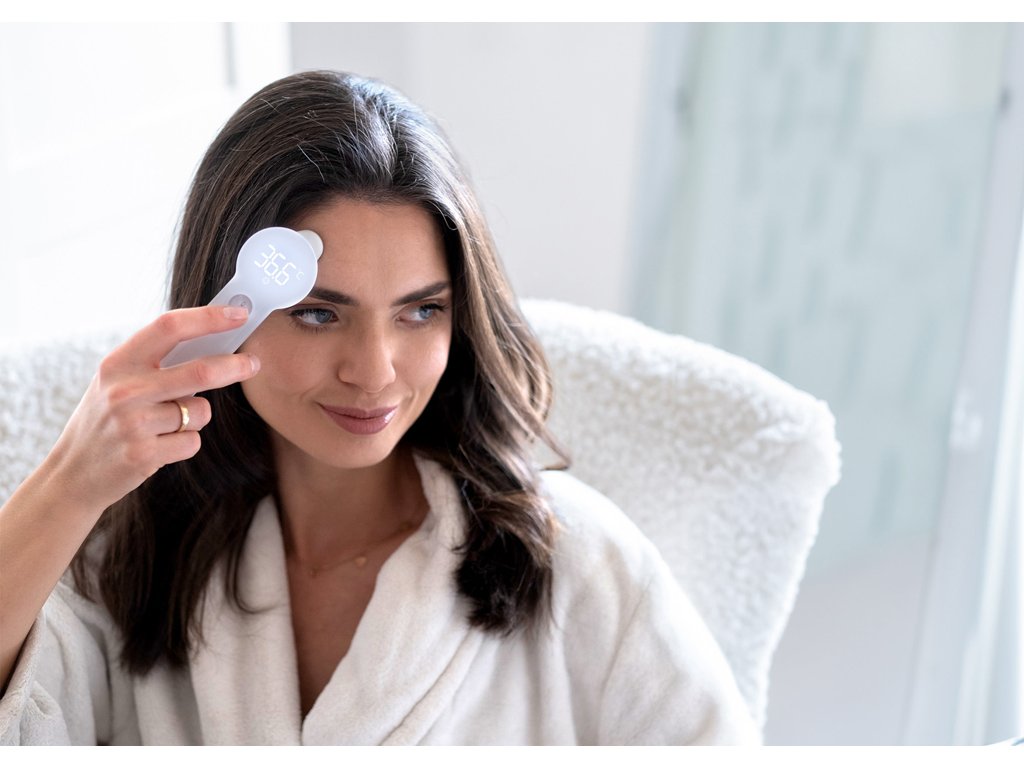 - Meranie teploty na čele: Meranie teploty na čele je obzvlášť užitočné pre novorodencov a malé deti. Zmeria teplotu za 1 sekundu.