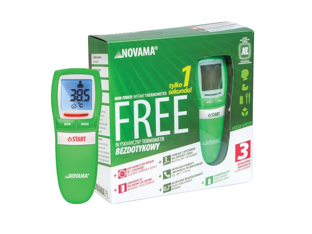 Novama Free je bezkontaktný teplomer, ktorý zaisťuje rýchle a spoľahlivé meranie teploty u detí aj dospelých. Vďaka inovatívnej technológii teplomer meria teplotu za menej ako 1 sekundu, čo umožňuje rýchlu diagnostiku a reakciu.
