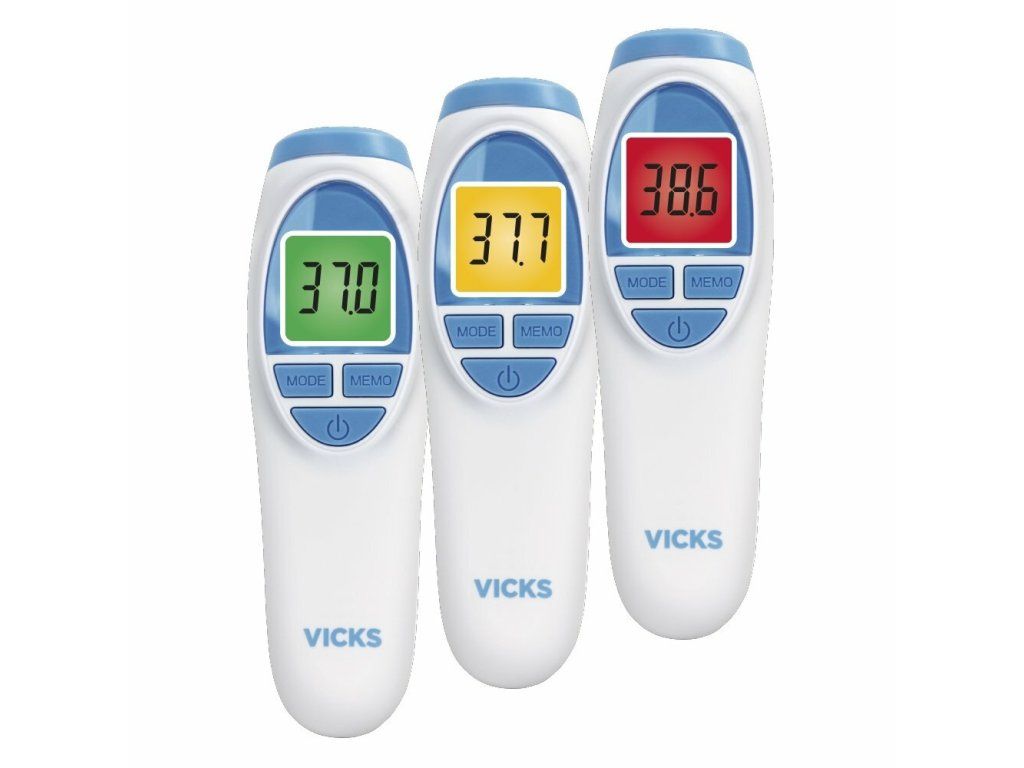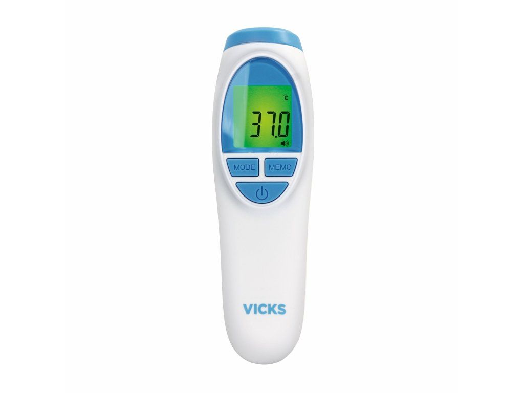 Bezkontaktný teplomer s klinicky overenou presnosťou.Čelový teplomer Vicks poskytuje inovatívnu, klinicky overenú technológiu, ktorá uľahčuje meranie teploty pre rodičov aj pre deti. Jednoduchým posunutím prístroja cez čelo získate okamžité presné meranie.