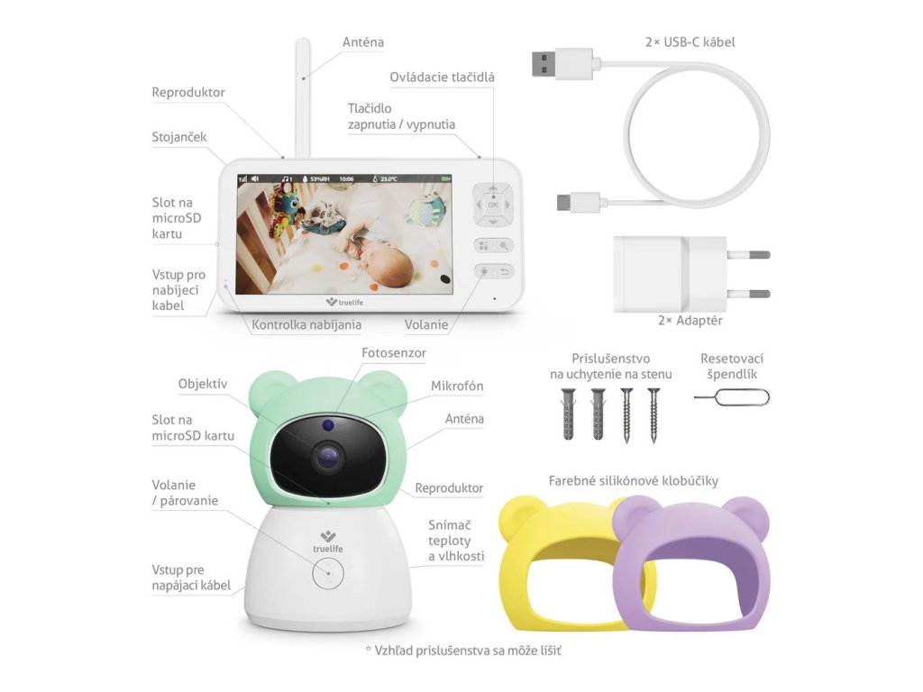 V balení nájdete sadu pre ľahké uchytenie na stenu. Pre ešte väčšiu flexibilitu je možné dokúpiť praktický držiak TrueLife NannyCam Holder, ktorý jednoducho obmotáte napríklad okolo postieľky.