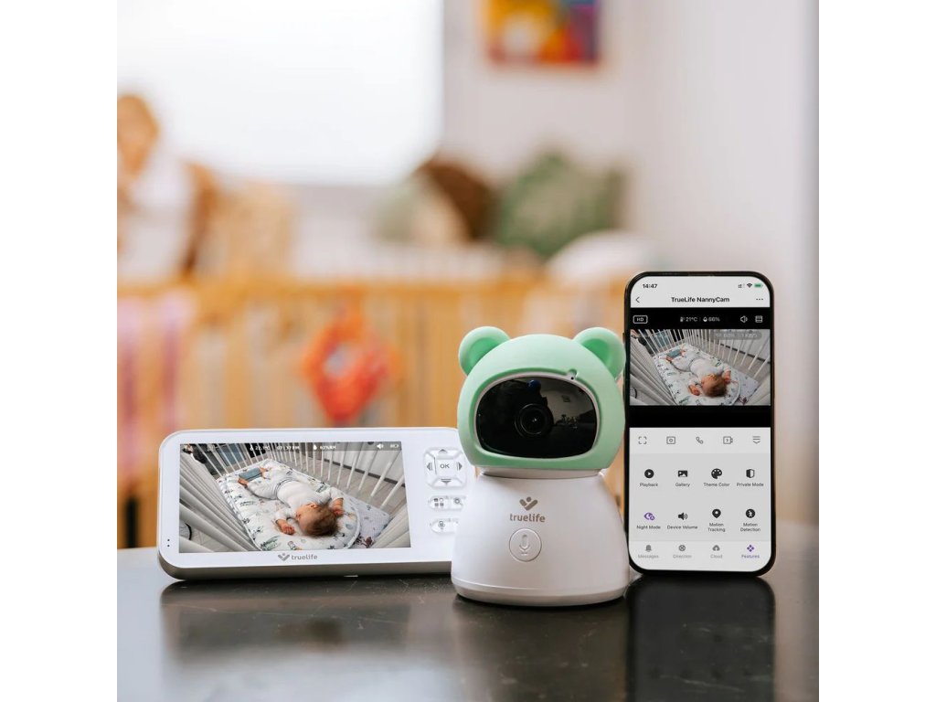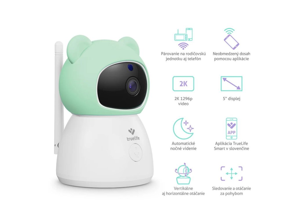S príchodom dieťaťa sa svet v niektorých ohľadoch spomalí, ale zároveň existuje mnoho spôsobov, ako byť neustále v strehu. Kamera TrueLife NannyCam R6 Dual Smart vám pomôže mať o všetkom prehľad, aj keď práve varíte, pracujete alebo si len na chvíľu sadnete. Vďaka duálnemu pripojeniu môžete svoje ratolesti sledovať prostredníctvom mobilnej aplikácie aj praktickej rodičovskej jednotky, ktorá funguje aj bez WiFi. Mobilná aplikácia TrueLife Smart navyše ponúka neobmedzený dosah, takže môžete byť v kontakte so svojím dieťaťom doslova odkiaľkoľvek. Inteligentná funkcia TrueLife SmartCare® vás upozorní na každý pohyb, plač a zmenu zvuku, zatiaľ čo senzory sledujú teplotu a vlhkosťv miestnosti. Kamera s funkciou TrueLife SmartTrack® sa automaticky otáča podľa pohybu a poskytuje vám širokouhlý pohľad na celú miestnosť - či už ide o najmenšieho člena rodiny alebo domáce zviera. Rozlíšenie kamery 2K a veľký 5“ displej LCD zabezpečujú ostrý a detailný obraz, automatické nočné videnie zaručuje jasný pohľad aj po zotmení, obojsmerná komunikácia umožňuje na diaľku utešiť dieťa hlasom, režim VOX šetrí batériu a 24/7 nahrávanie na kartu SD uchováva všetky záznamy v bezpečí pre neskoršie preskúmanie.