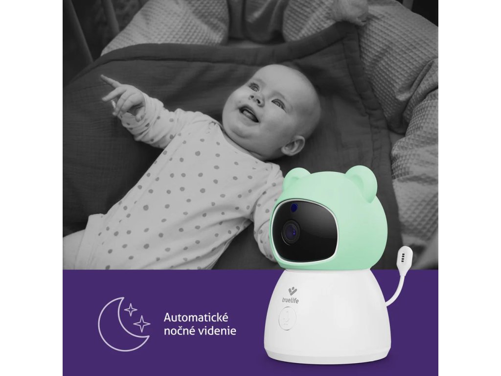 Technológia TrueLife SmartTrack® múdro sleduje pohyb a automaticky otáča kameru tam, kde sa niečo deje. Vaše dieťatko tak zostáva v zábere, aj keď práve skúma každý kút izby.