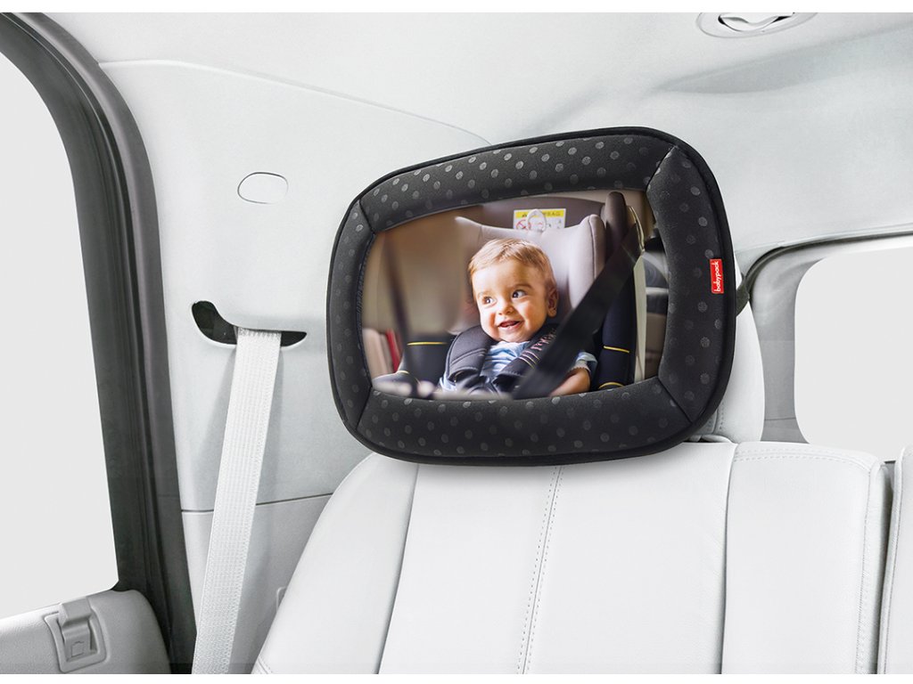 A) Široké spätné zrkadlo s čistým uhlom pre bezpečný kontakt s vaším dieťatkom na cestách. Vďaka zrkadle bude vaše dieťatko s vami v neustálom kontakte. Konvexné tvar zrkadlá ponúka čistý pohľad bez prekážok ako na dieťa, tak na jeho okolie. Vďaka inštalácii na opierke hlavy zadného sedadla bude mať vaše dieťatko jasný výhľad na vás i zo svojej autosedačky.