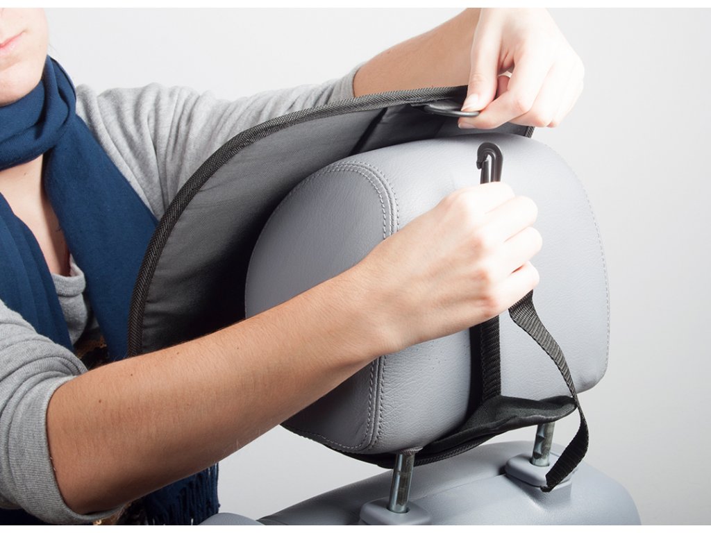 D) Nastaviteľný pás sa ľahko prispôsobí rôznym veľkostiam opierky hlavy.