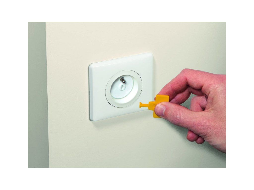 Záslepka bráni deťom strkať do zásuvky prsty alebo predmety a chráni ich tak pred nebezpečným úrazom elektrickým prúdom. Ochranu ľahko zo zásuvky vyberiete s pomocou priloženého kľúča.
