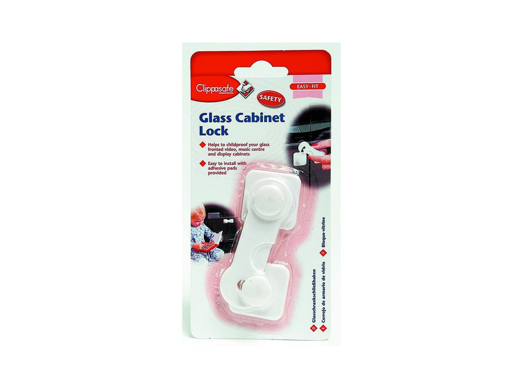Zámok Clippasafe na presklenú skrinku pomáha zabrániť deťom otvárať presklené skrinky na video, audiosystém a vitríny.