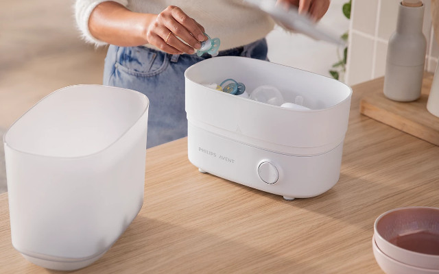 Materiál predmetov: Nie všetky predmety sú vhodné na sterilizáciu. Skontrolujte, či sú vaše fľaše, cumlíky či iné potreby označené ako bezpečné pre vyváranie, mikrovlnnú rúru alebo sterilizáciu parou.
