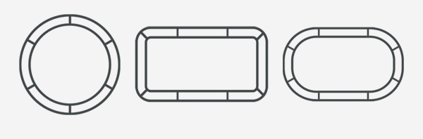 Berg trampolíny sú dostupné v troch rôznych tvaroch, ktoré sa hodia do rôznych záhradných priestorov a preferencií používateľov: