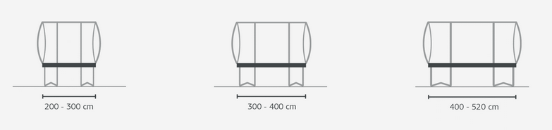 Berg trampolíny sú dostupné v rôznych veľkostiach, od kompaktných modelov s priemerom 200 cm až po veľké trampolíny s priemerom až 520 cm. Vyberte si veľkosť, ktorá najlepšie vyhovuje vašej záhrade a potrebám vašej rodiny.