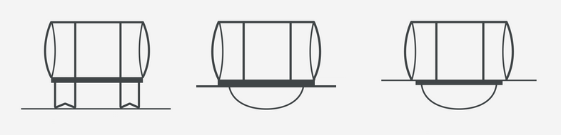 Trampolíny Berg sú dostupné v troch prevedeniach, ktoré určujú spôsob ich inštalácie a umiestnenia: