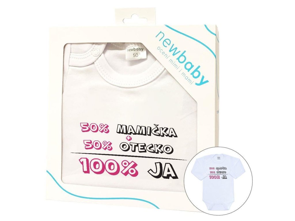 Body s potlačou New Baby 50% MAMIČKA + 50% OTECKO - 100% JA ružové - darčekové balenie, 74 (6-9m) - 50525
