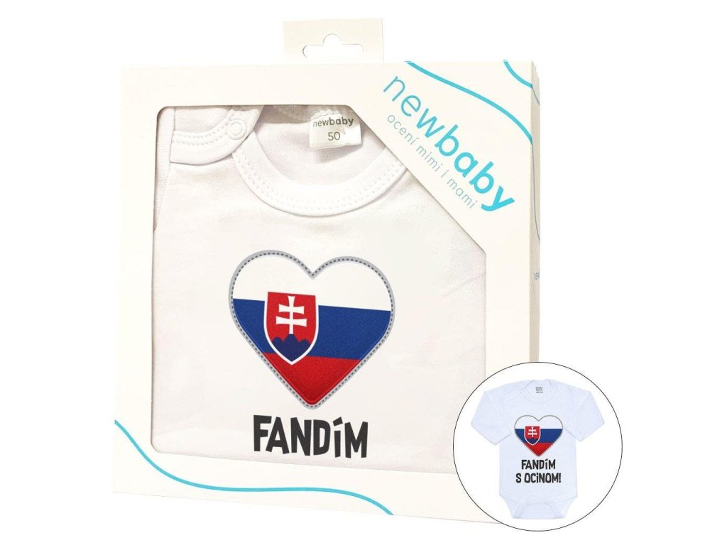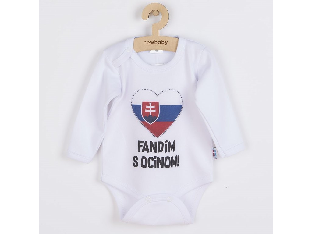 Originálne bavlnené dojčenské body s dlhým rukávom New Baby, s vtipným nápisom Fandím s ocinom a obrázkom slovenskej vlajky. Farby použité k potlači sú certifikované a vhodné pre bábätká. Je vyrobené z príjemného a kvalitného materiálu, v ktorom sa bude Vaše bábätko cítiť príjemne. Body má zapínanie na cvočky na ramienku a medzi nožičkami, čo uľahčuje obliekanie a prebaľovanie. Doprajte Vášmu bábätku vyniknúť v originálnom body. Zloženie: 100% bavlna. Rozmery: obvod okolo hrudníka cca 38 cm, dĺžka rukáva cca 21 cm, celková dĺžka cca 33 cm.Dodatočné parametre