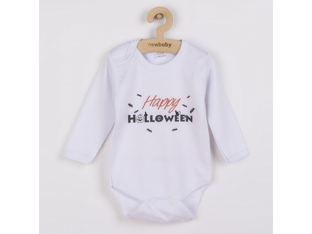 Originálne bavlnené dojčenské body s dlhým rukávom New Baby, s vtipným nápisom Happy Halloween a obrázkom halloweenských motívov. Farby použité k potlači sú certifikované a vhodné pre bábätká. Je vyrobené z príjemného a kvalitného materiálu, v ktorom sa bude Vaše bábätko cítiť príjemne. Body má zapínanie na cvočky na ramienku a medzi nožičkami, čo uľahčuje obliekanie a prebaľovanie. Doprajte Vášmu bábätku vyniknúť v originálnom body. Zloženie: 100% bavlna. Rozmery: obvod okolo hrudníka cca 46 cm, dĺžka rukáva cca 24 cm, celková dĺžka cca 40 cm.Dodatočné parametre