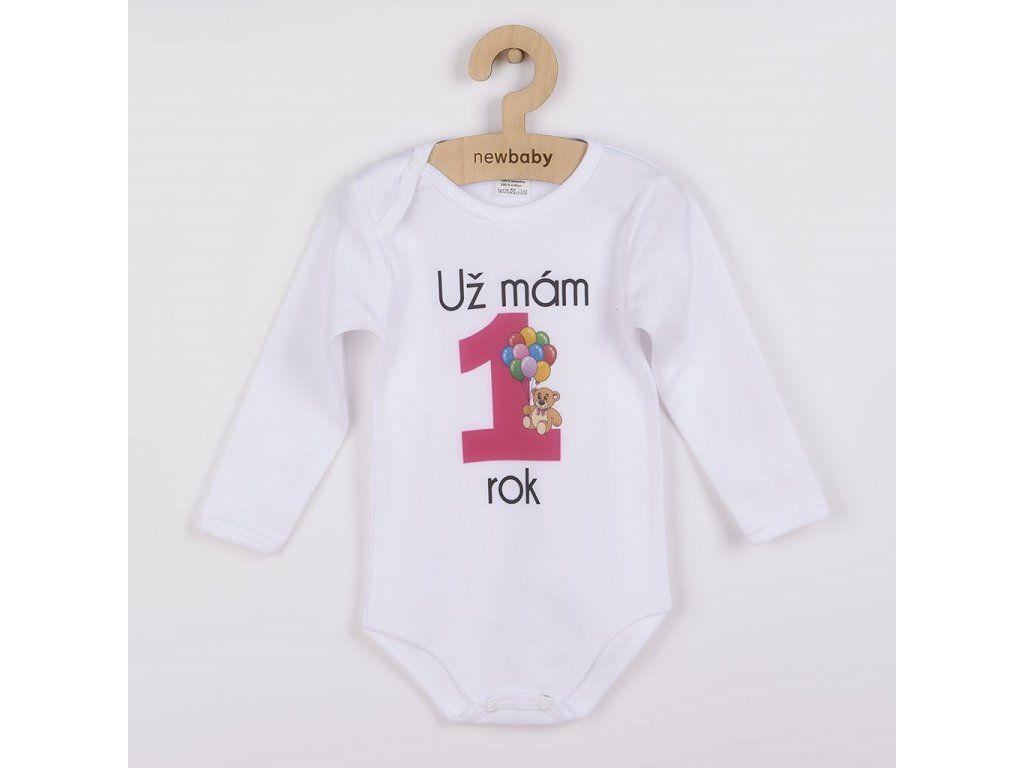 Body s potlačou New Baby Už mám 1 rok ružové - darčekové balenie, 80 (9-12m) - 50689