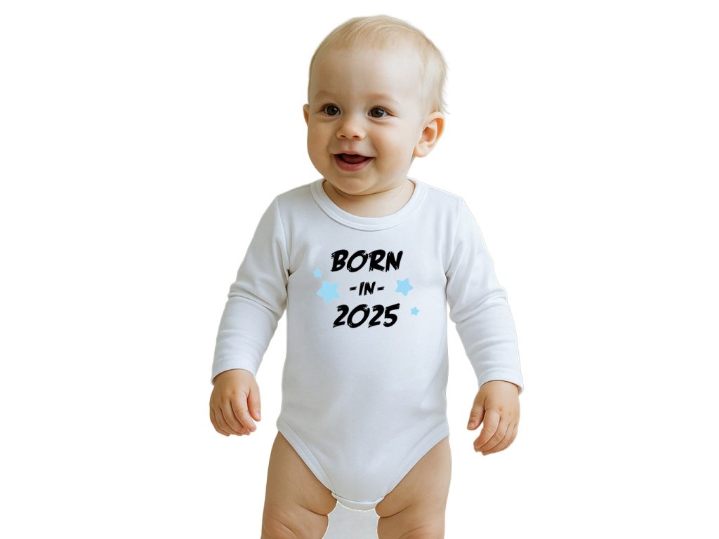 Detské body s potlačou New Baby BORN IN 2025 blue, 74 (6-9m) - 57205