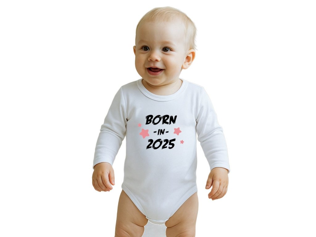 Detské body s potlačou New Baby BORN IN 2025 pink, 62 (3-6m) - 57197
