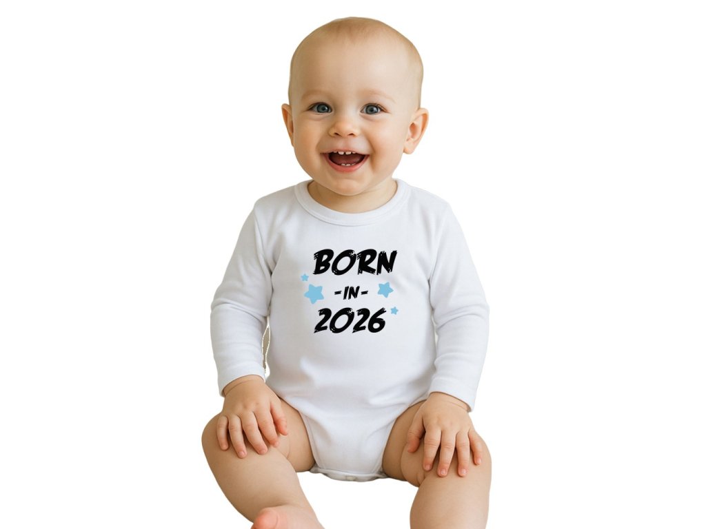 Detské body s potlačou New Baby BORN IN 2026 blue, 74 (6-9m) - 59254