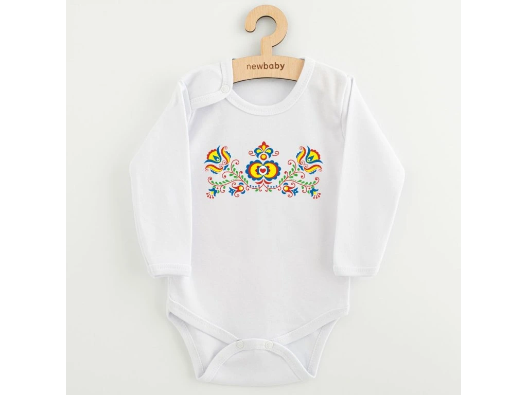 Originálne, štýlové a pohodlné detské body s nádhernou folklórnou potlačou New Baby, dokonale spája tradíciu s moderným dizajnom. Ideálna voľba pre malých milovníkov ľudovej tradície, ktorí ocenia kvalitné materiály a jedinečný vzhľad. Folklórny vzor inšpirovaný tradičnými motívmi dodá vášmu dieťatku šmrnc.