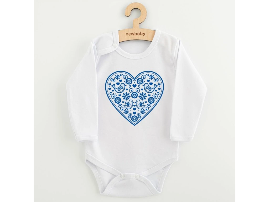 Detské body s potlačou New Baby Ľudový vzor modré srdiečko, 56 (0-3m) - 57366