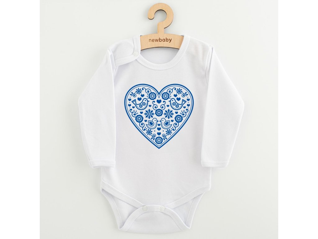 Detské body s potlačou New Baby Ľudový vzor modré srdiečko, 62 (3-6m) - 57367