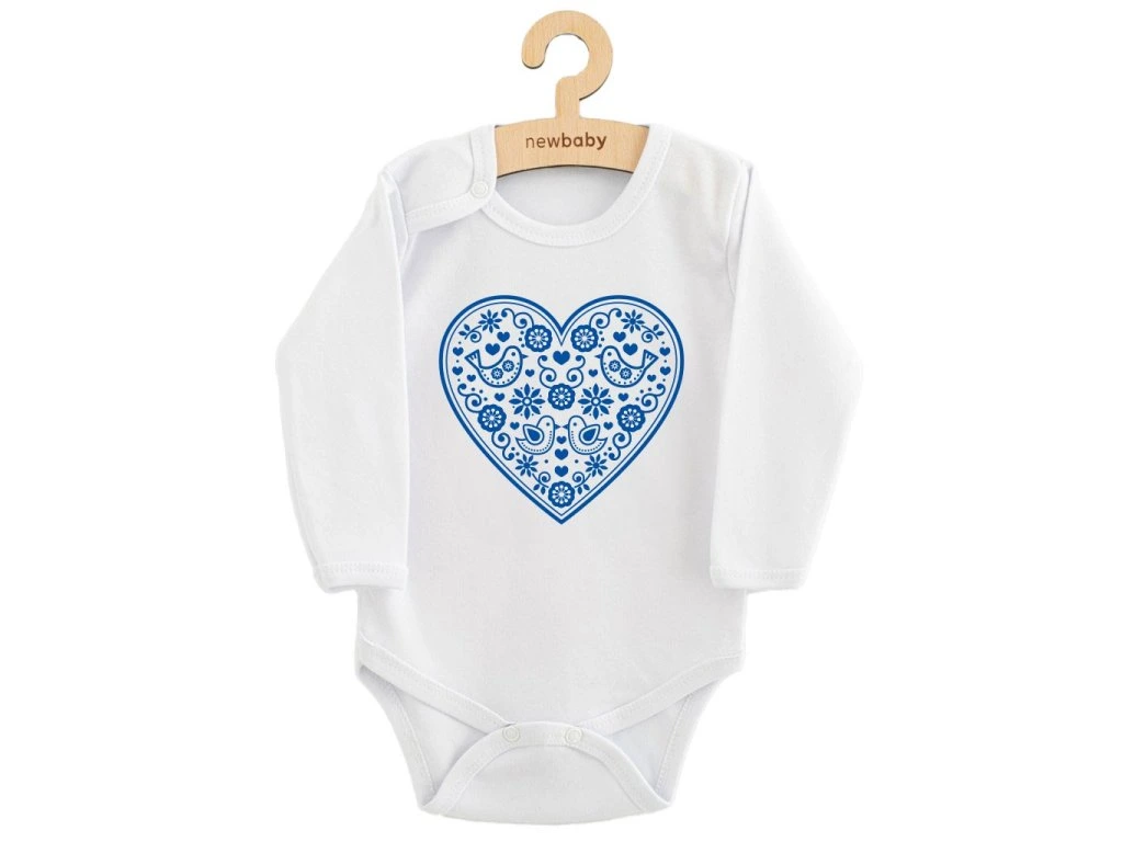 Detské body s potlačou New Baby Ľudový vzor modré srdiečko, 74 (6-9m) - 57369