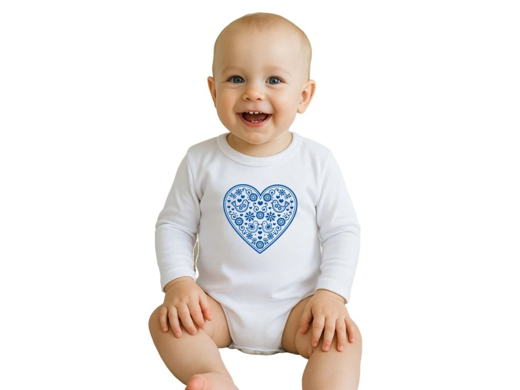 Originálne, štýlové a pohodlné detské body s nádhernou folklórnou potlačou New Baby, dokonale spája tradíciu s moderným dizajnom. Ideálna voľba pre malých milovníkov ľudovej tradície, ktorí ocenia kvalitné materiály a jedinečný vzhľad. Folklórny vzor inšpirovaný tradičnými motívmi dodá vášmu dieťatku šmrnc.