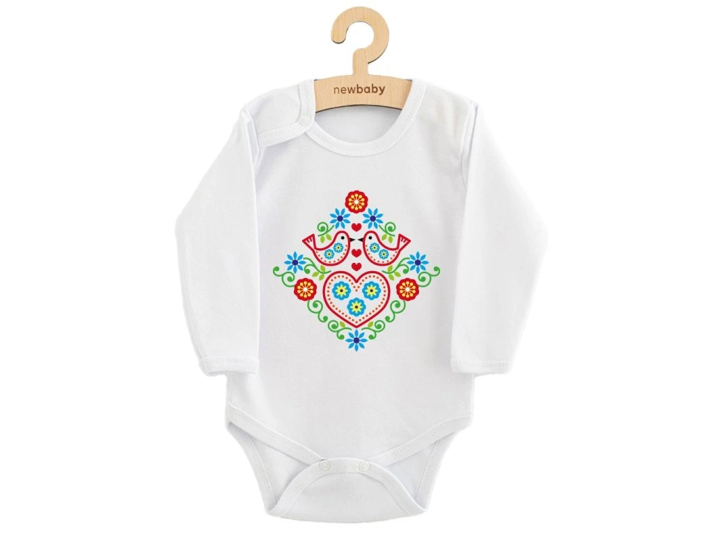 Originálne, štýlové a pohodlné detské body s nádhernou folklórnou potlačou New Baby, dokonale spája tradíciu s moderným dizajnom. Ideálna voľba pre malých milovníkov ľudovej tradície, ktorí ocenia kvalitné materiály a jedinečný vzhľad. Folklórny vzor inšpirovaný tradičnými motívmi dodá vášmu dieťatku šmrnc.
