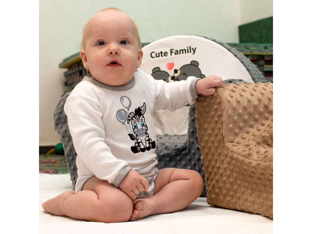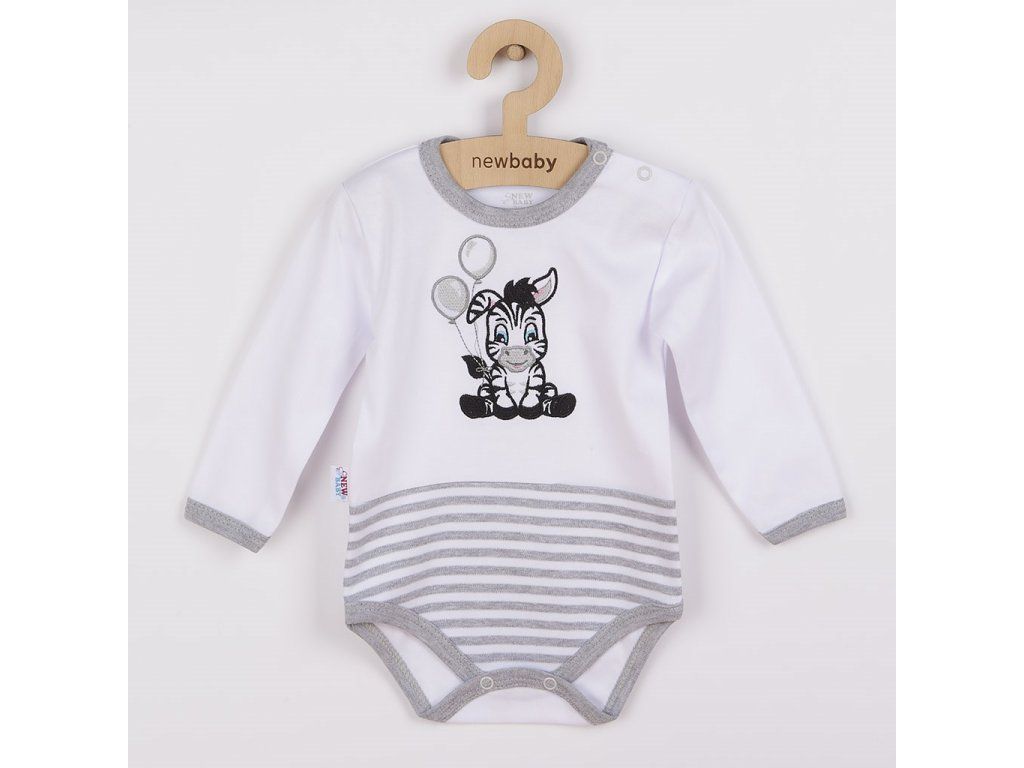 Bavlnené body New Baby Zebra exclusive pre bábätká. Body je ozdobené vyšitým obrázkom roztomilej zebry a spodná časť je celopotlačená pruhmi. Obrázok je podlepený látkou. Okolo krčku, nožičiek a ručičiek má sivé lemovanie. Zapínanie na ramienku a medzi nožičkami. Pre bábätká je dôležitým kúskom oblečenia a pri akomkoľvek pohybe je chrbátik bábätka stále prikrytý. Zloženie: 100% bavlna.Dodatočné parametre