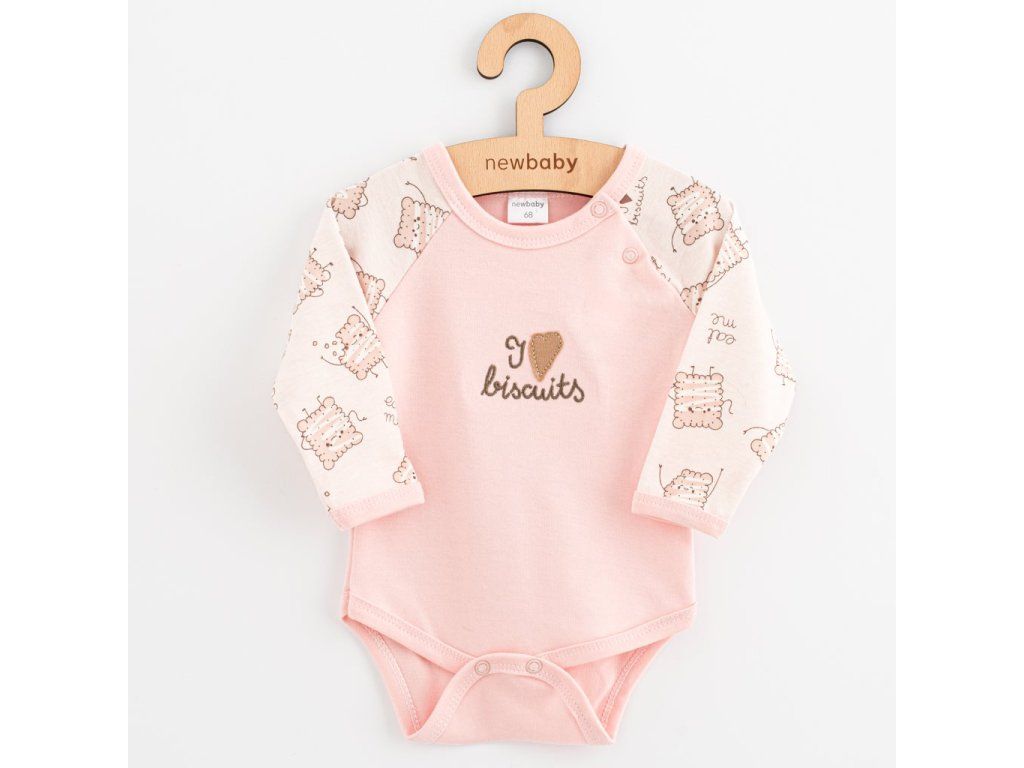 Dojčenské bavlnené body s dlhým rukávom New Baby Biscuits ružová, 56 (0-3m) - 55617