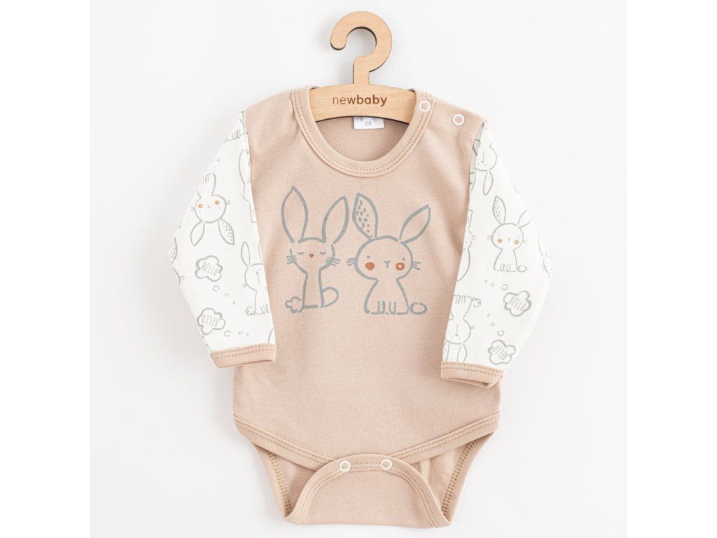Originálne a nápadité bavlnené dojčenské body s dlhým rukávom New Baby z kolekcie Rabbit friends. Body zdobí potlač králičkov. Veľmi príjemný, mäkký a kvalitný materiál, ktorý je vhodný pre bábätká. Zapínanie na cvočky na ramienku a medzi nožičkami uľahčí obliekanie a prebaľovanie. Zloženie: 100% bavlna.Dodatočné parametre