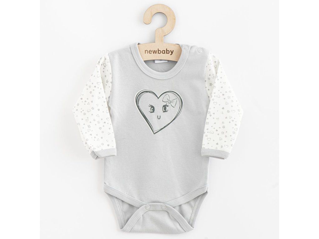 Originálne a nápadité bavlnené dojčenské body s dlhým rukávom New Baby z kolekcie Srdiečka. Body zdobí potlač srdiečok. Veľmi príjemný, mäkký a kvalitný materiál, ktorý je vhodný pre bábätká. Zapínanie na cvočky na ramienku a medzi nožičkami uľahčí obliekanie a prebaľovanie. Zloženie: 100% bavlna. OEKO-TEX STANDARD 100.Dodatočné parametre