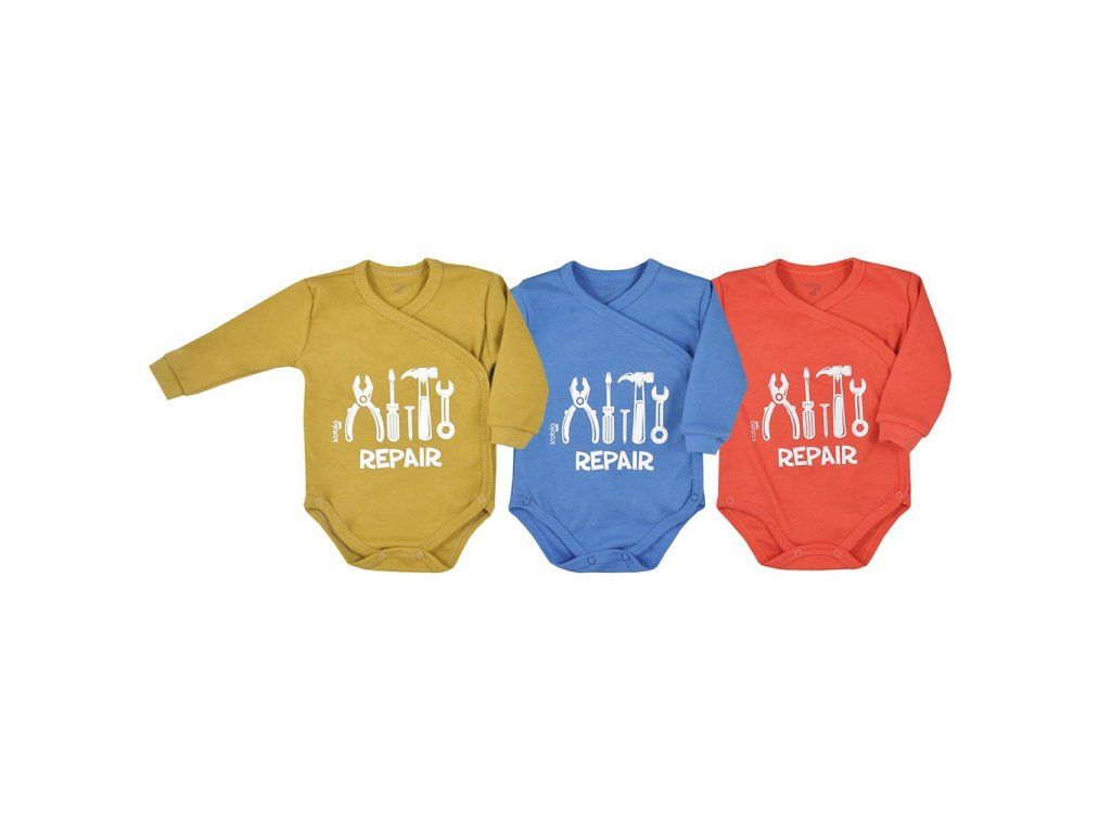 Celorozopínacie body Koala Repair. Farebné body je zdobené obrázkom kutilského náradia a nápisom Repair. Zapína sa na cvočky po celej dĺžke a medzi nožičkami, čo uľahčuje obliekanie a prebaľovanie. Zloženie: 100% bavlna.Dodatočné parametre