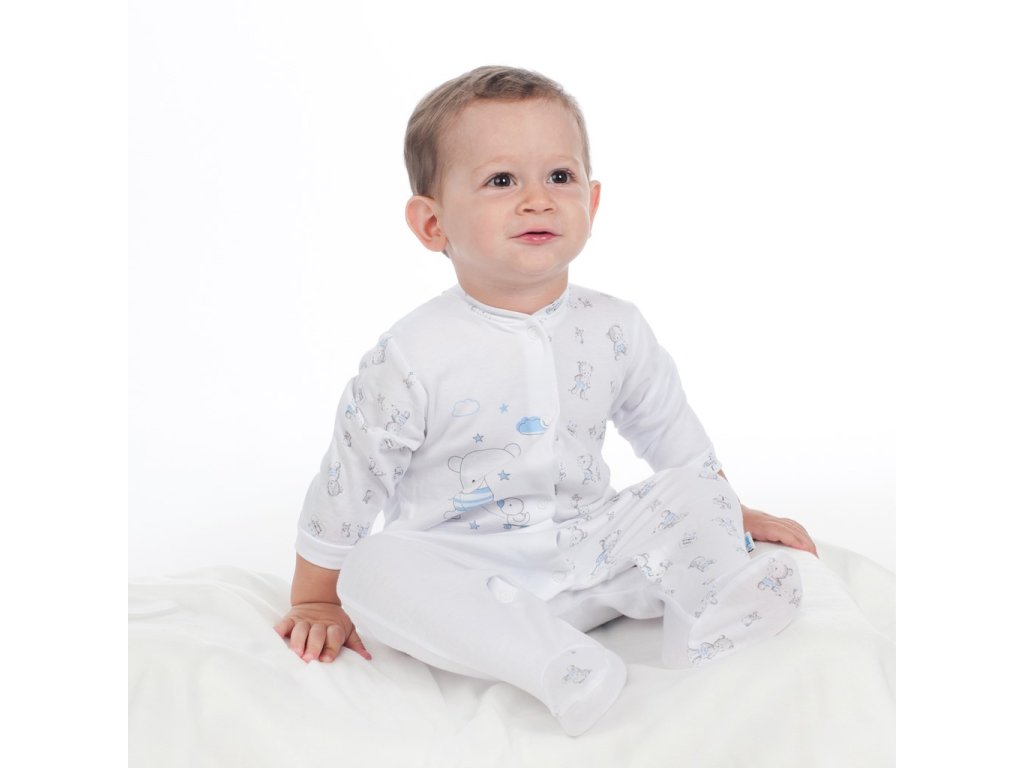 Dojčenské body s dlhým rukávom New Baby Bears. Detské body má rukávky celopotlačené medvedíkmi a predná strana je zdobená obrázkom medvedíka a nápisom. Zapínánie na cvočky na ramienku a medzi nožičkami. Zloženie: 100% bavlna.Dodatočné parametre