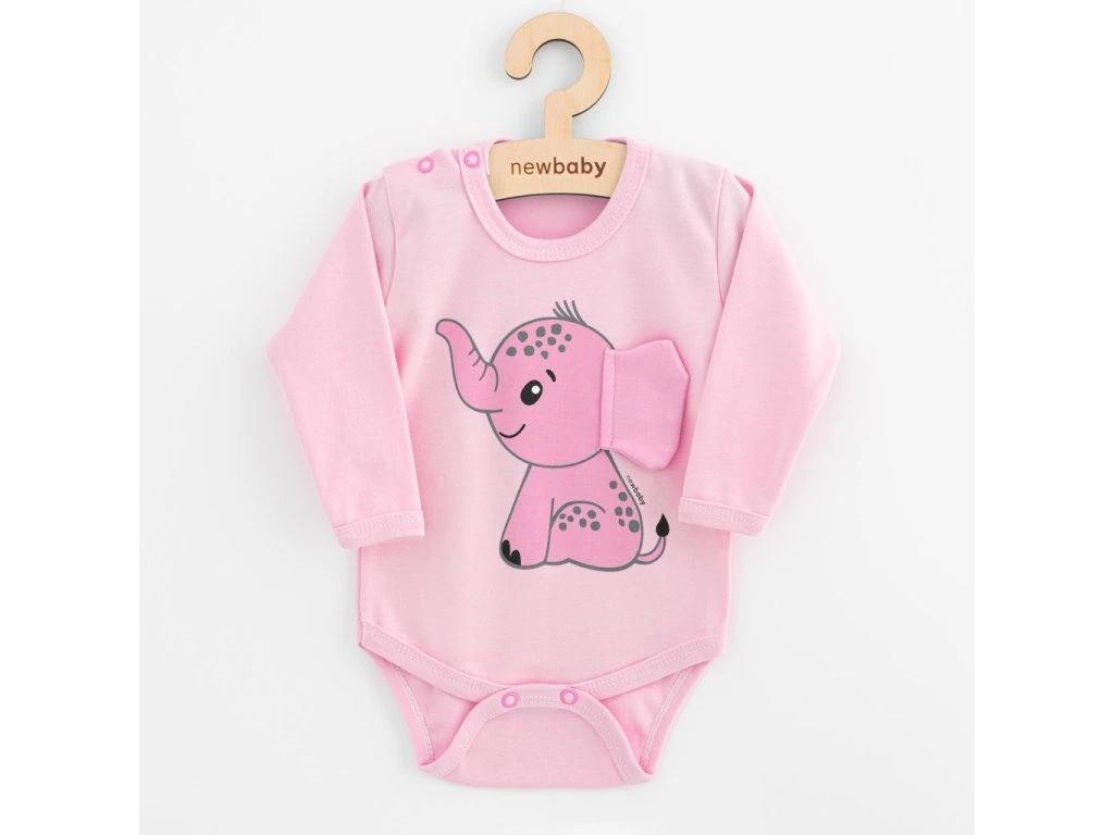 Dojčenské body s dlhým rukávom New Baby Happy Elephant pink, 86 (12-18m) - 56484