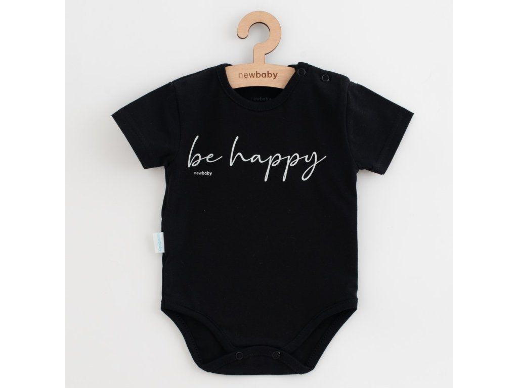 Krásne dojčenské body New Baby Be Happy. Body zdobí štýlový nápis be happy. Zapína sa na cvočky na ramienku a medzi nožičkami, čo uľahčuje obliekanie a prebaľovanie. Body je vyrobené z príjemného a kvalitného materiálu, v ktorom sa bábätko bude cítiť veľmi pohodlne. Body je pre bábätká dôležitým kúskom oblečenia. Pri akomkoľvek pohybe je chrbátik bábätka stále prikrytý. Zloženie: 100% bavlna.